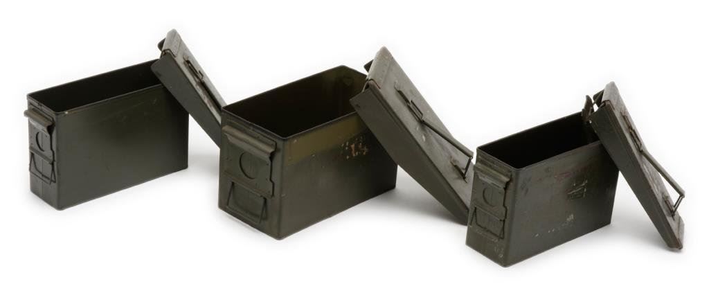 Lot of 3 metal olive green U.S. ammo cans (empty). Est.: $25-$50.