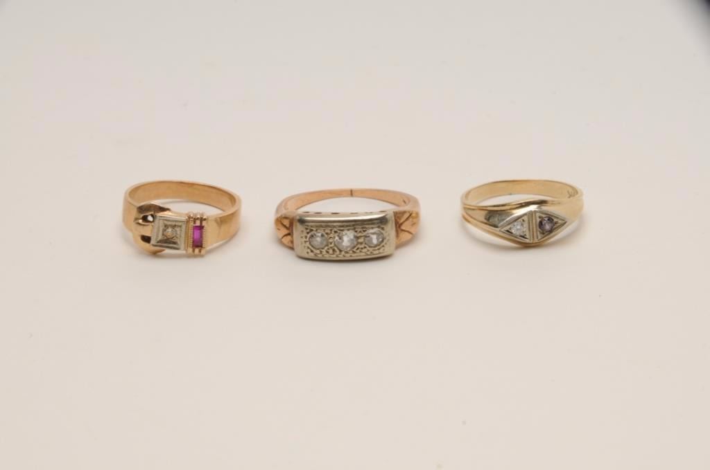 Lot of 3 vintage gold and diamond rings. Circa 1920-40’s Est.: $100-$300