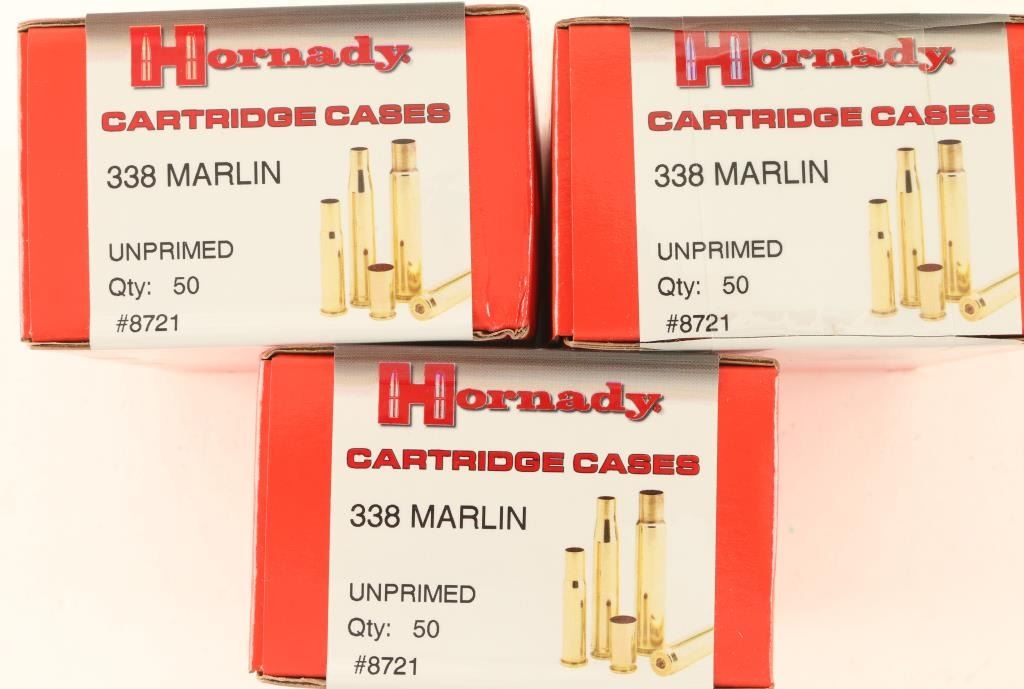Including 150 rds of new, in box .338 Marlin brass by Hornady.