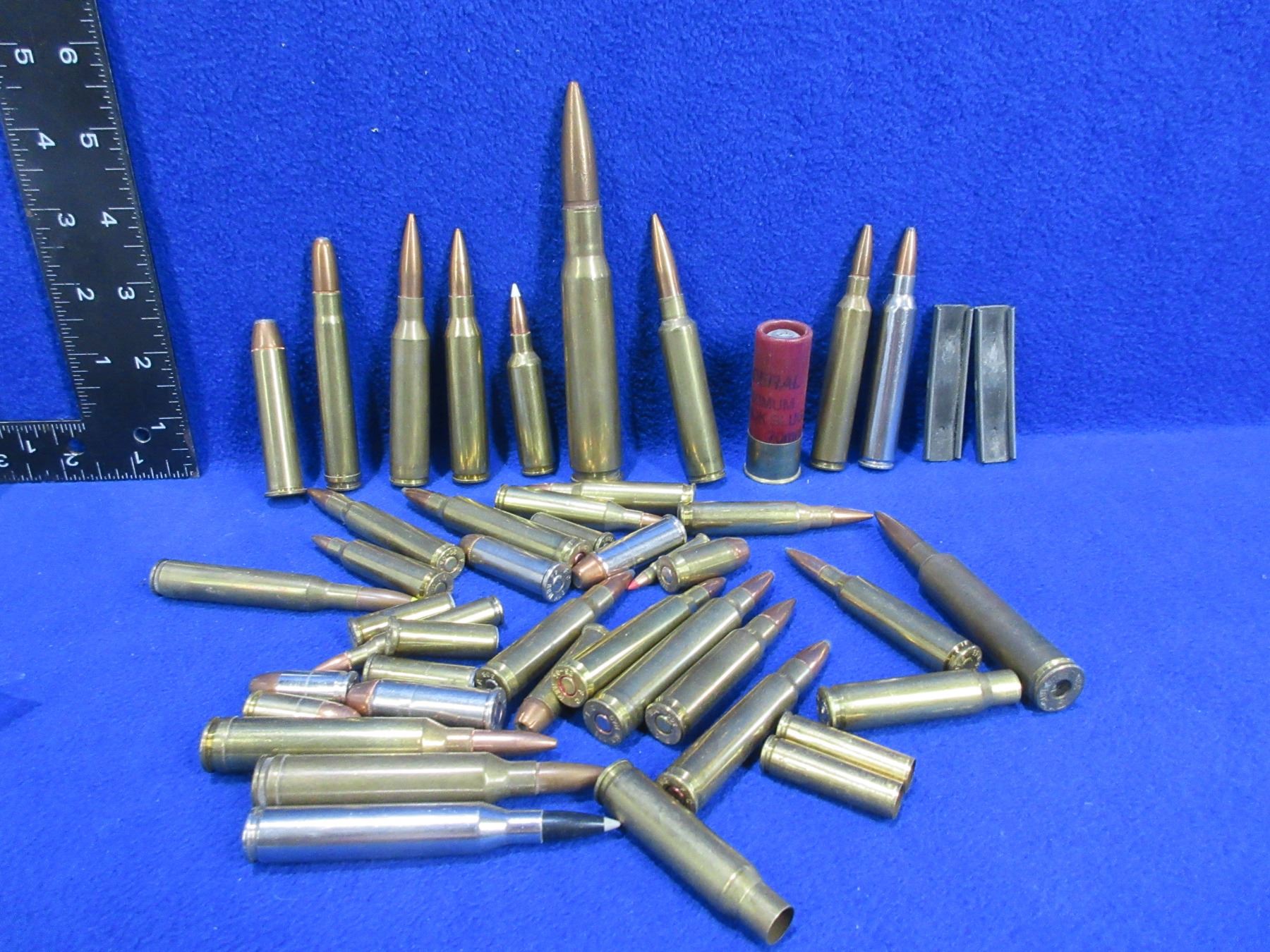 Lot of 35+ Assorted Cartridges, 4 Brass & 2 Stripper Clips - PICK UP ONLY