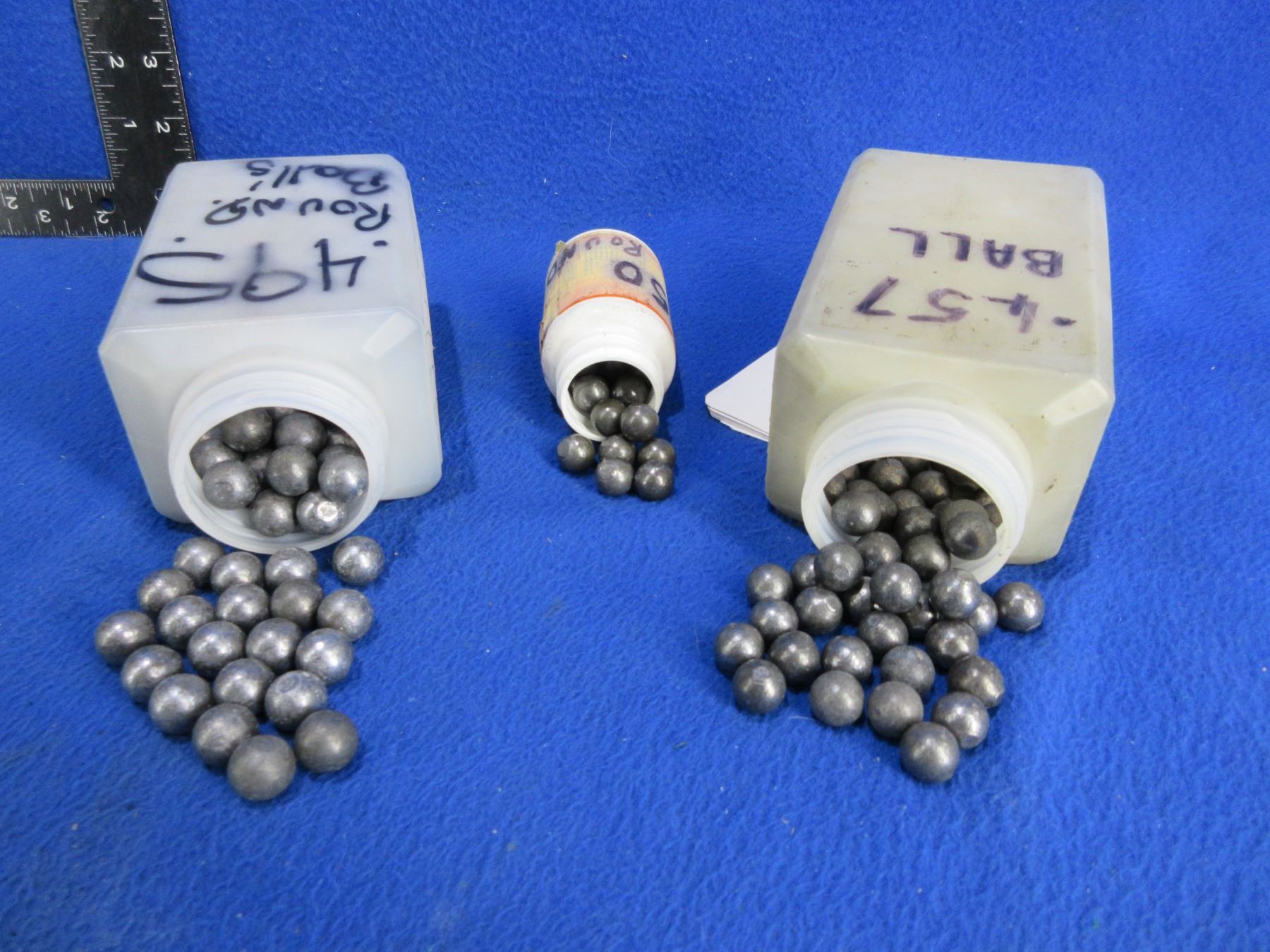 Lot of .495" (Tub of Approx. 100), .457" (Tub of 58) and .450" (Tub of 50) Lead Round Balls