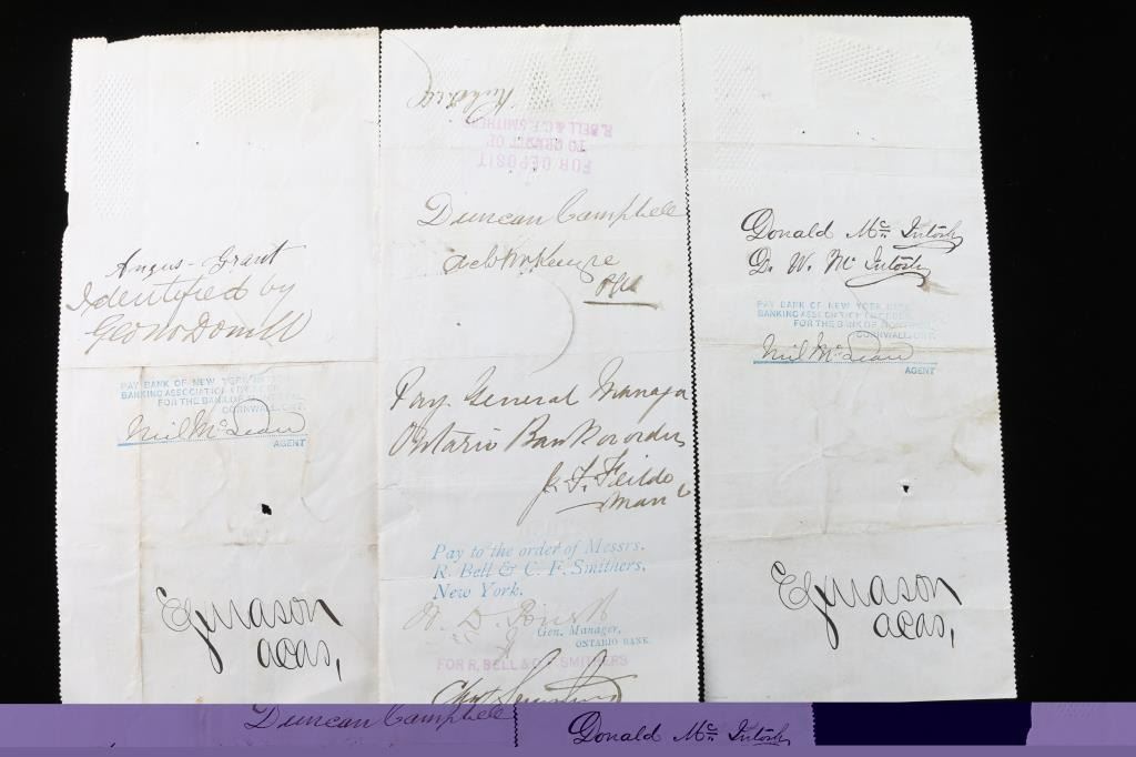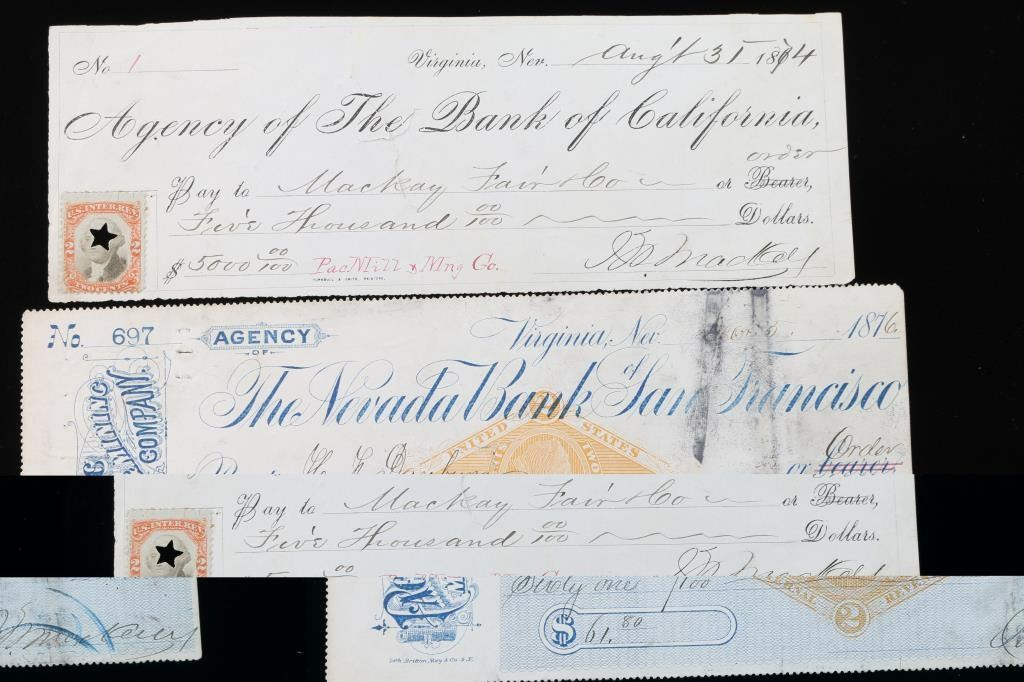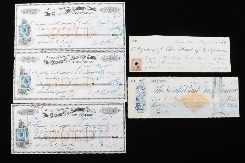 Includes: (3) Carson City Savings Bank checks, (1) Agency of the Bank of California check, (1) The Nevada Bank San Francisco check.