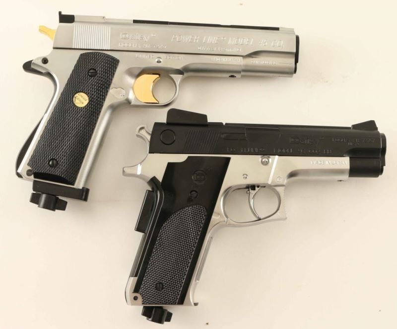 Including; Power Line 1700 in original box, Power Line 693 in plastic case with manual, CO2 cartridges and BBs, Limited Edition Power Line 5645 in plastic case with manual, pellets and cartridges, Power Line 6645 Custom Nickel Plated in plastic case with manual, pellets and cartridges, and Power Line 44 in case with cartridges and pellets-accessory is missing.