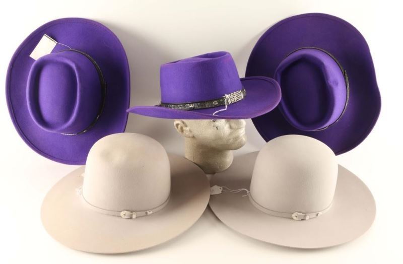 Bailey size 7 Paradise AX, Bailey Paradise AX size 6 7/8, and 3 purple Little Joe hats size XL.