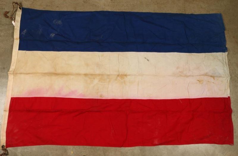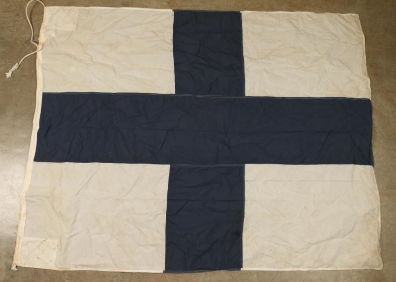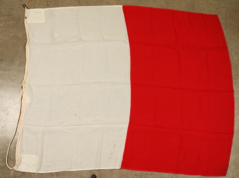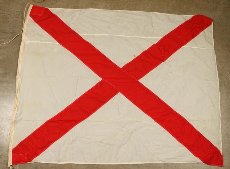 The International Code of Signals (ICOS) was generally accepted at the time of the World War I. At that time the great majority of ships were not equipped with radio then known as the wireless. Communication from ship to ship was carried out by use of "ship flags" and virtually all ships carried a printed copy of the ICOS and a set of the International Signal Flags. Messages were sent by hoisting the flags at a prominent place on the ship. (1)J is a flag of blue, white and blue, divided horizontally, white stripe in the center. (1)H is white and red divided vertically, white at the hoist and the red at the fly. (1)V is a white flag with a red saltire or St Andrew's Cross. This is also called "St. Patrick's Saltire". (1) Code Flags. T.T is a tricolor flag, red, white and blue, red at hoist, blue at fly. (1)X is a white flag with a blue St. George's Cross