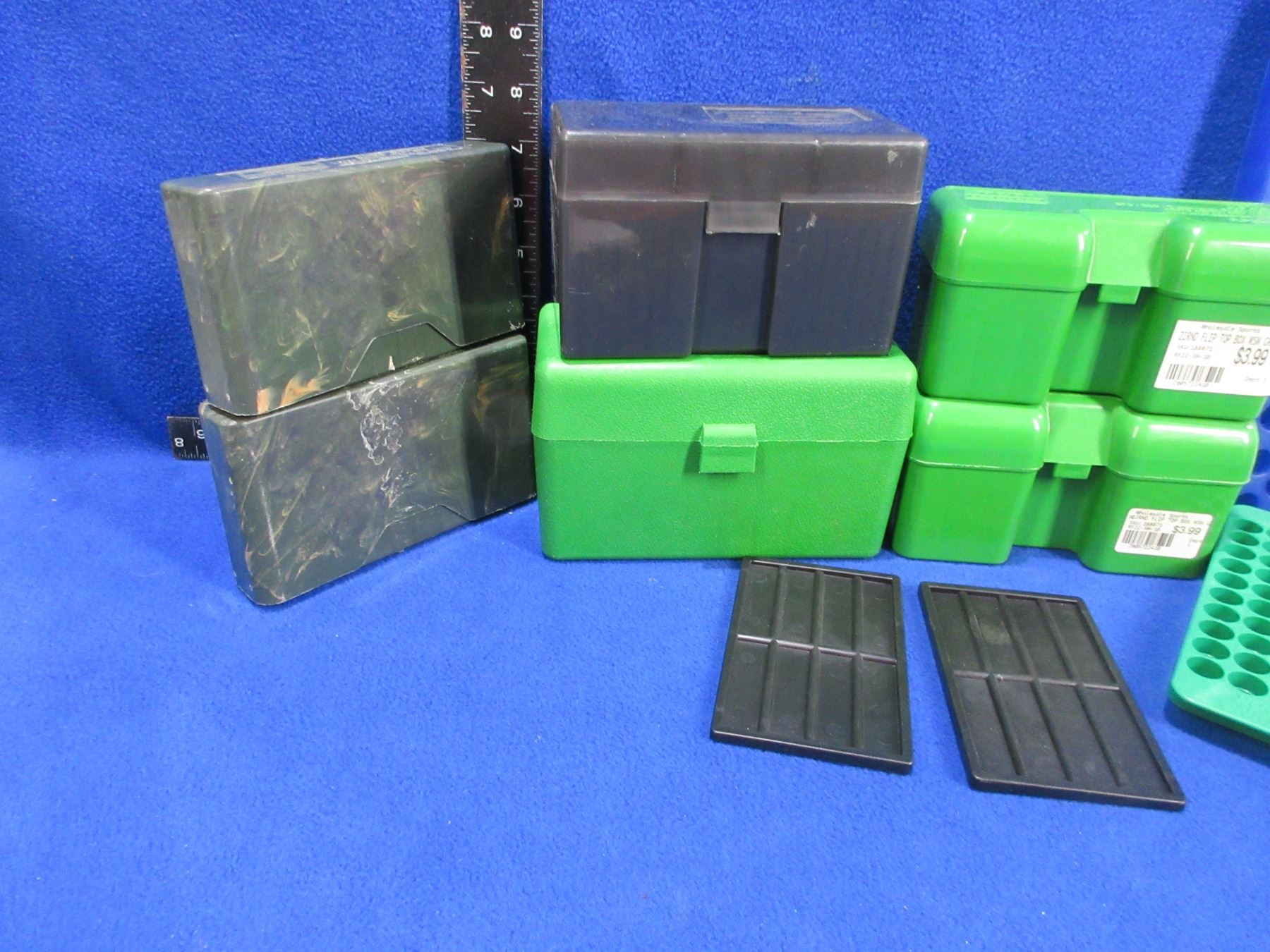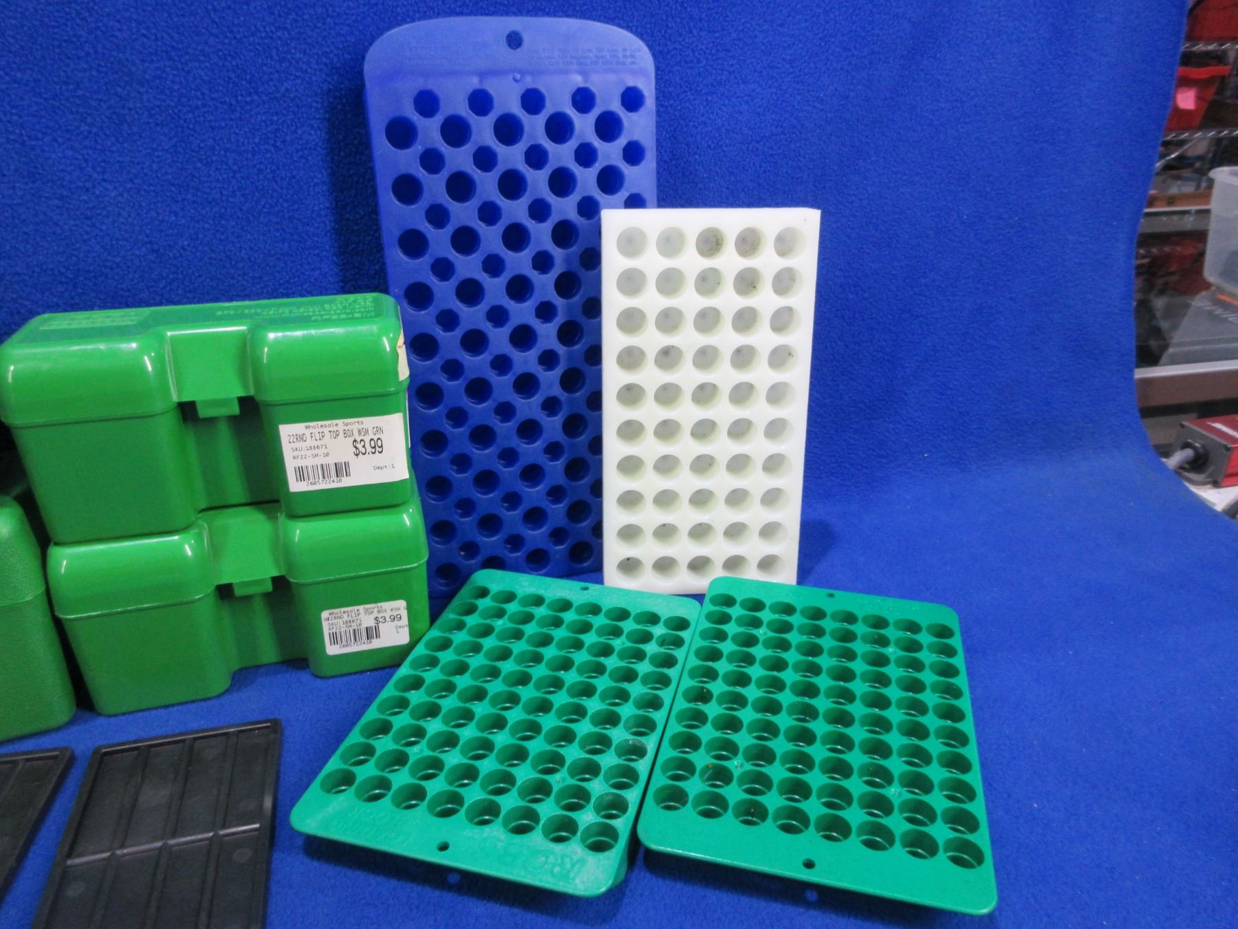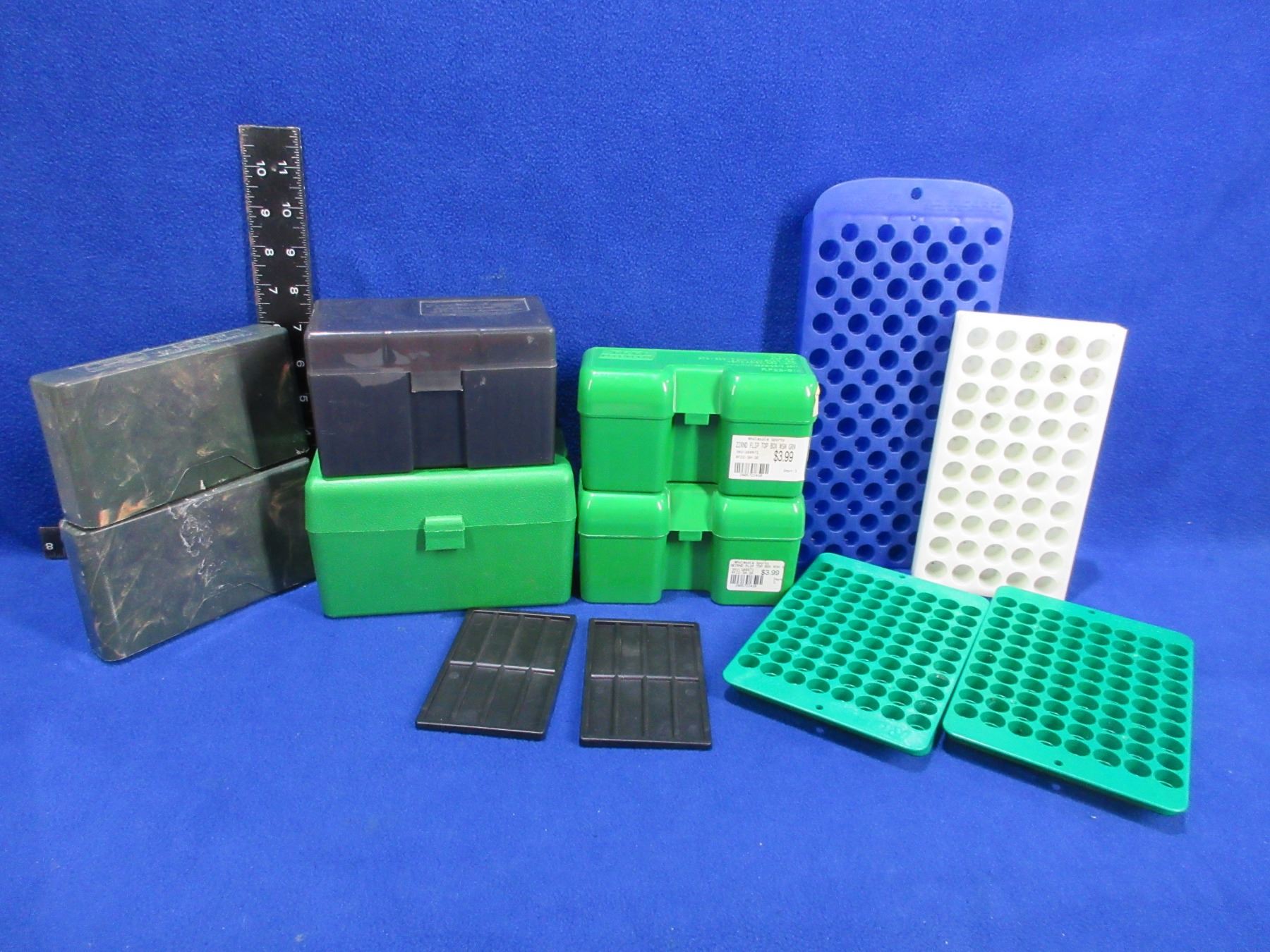 Lot of 6 Misc. Empty Ammo Boxes and 4 Reloading Trays
