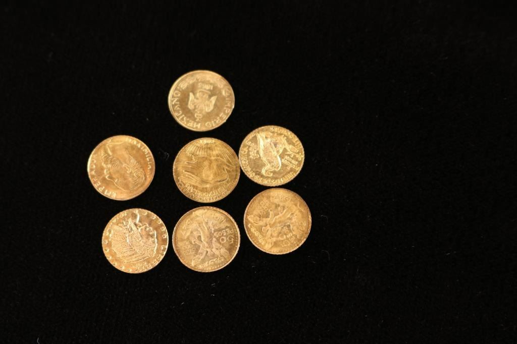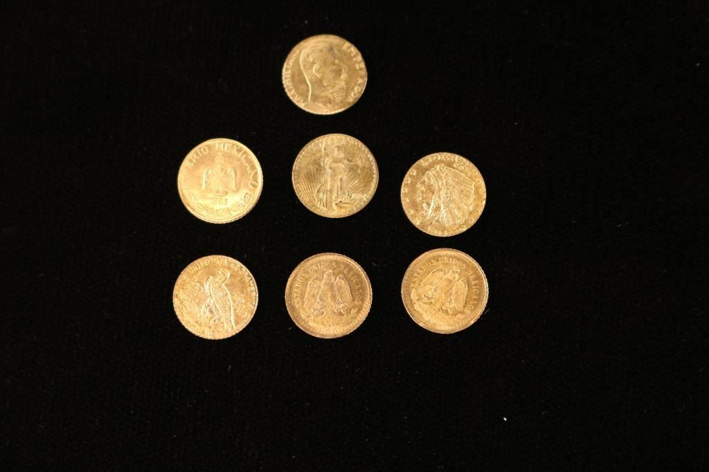 (2) 1914 date Indian head (1)1924 St Gaudens (2) 1821-1941 Peso (2) Maximillion 1875 coin