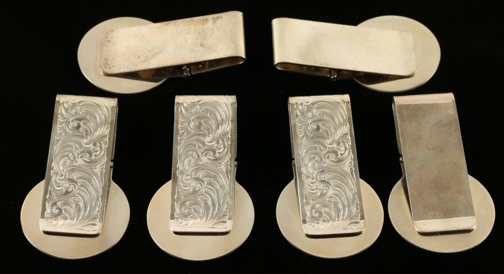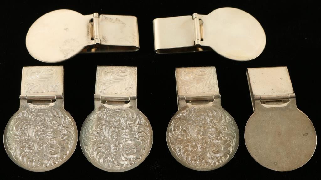 3 plain and 3 with scroll and floral design. All are marked 'WAGE' and 'Sterling Overlay'. Nice collection for the distinguished gentleman