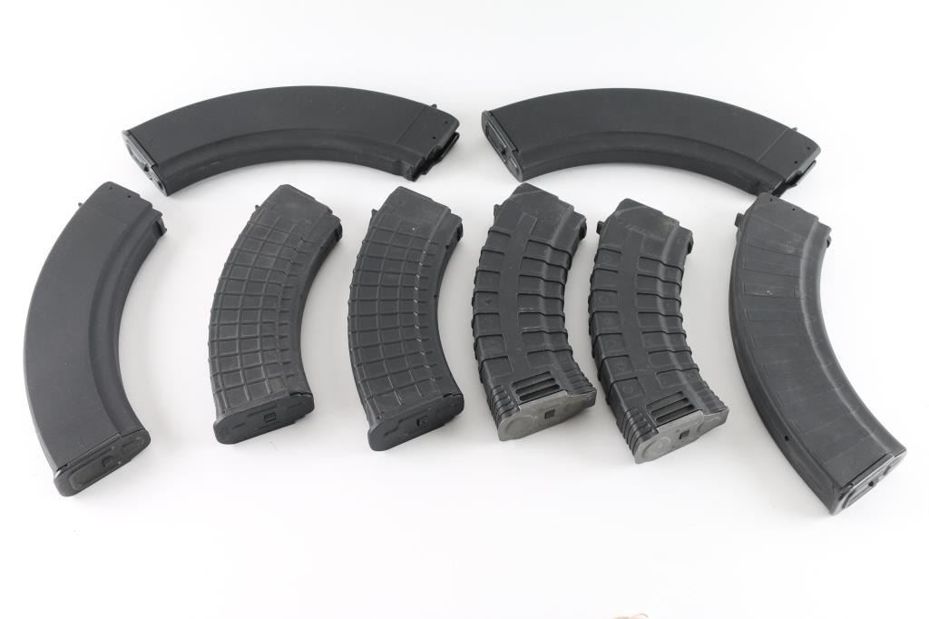Four Bulgarian AK-47 7.62x39mm 40-Round Steel Lined Polymer Magazines, Four polymer 30-round AK-47 7.62x39mm AK-47 magazines, two Tapco, and Two unmarked. (8) Total. all in very good condition.
