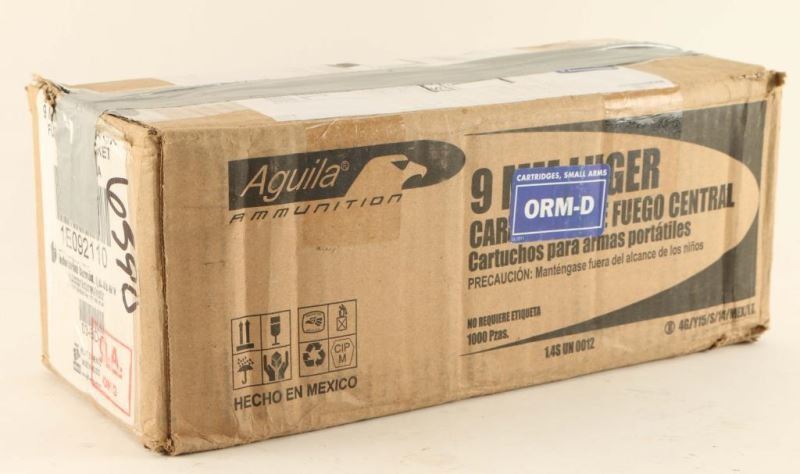 Aguila 9mm Luger CF 1000Rds in unopened box.