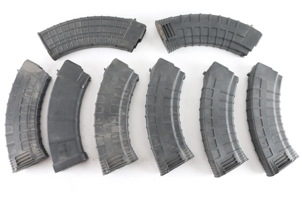 8 Polymer Ak-47 7.62 X 39mm 30 round magazines. 6 Tapco, 1 Thermold & 1 Bulgarian.