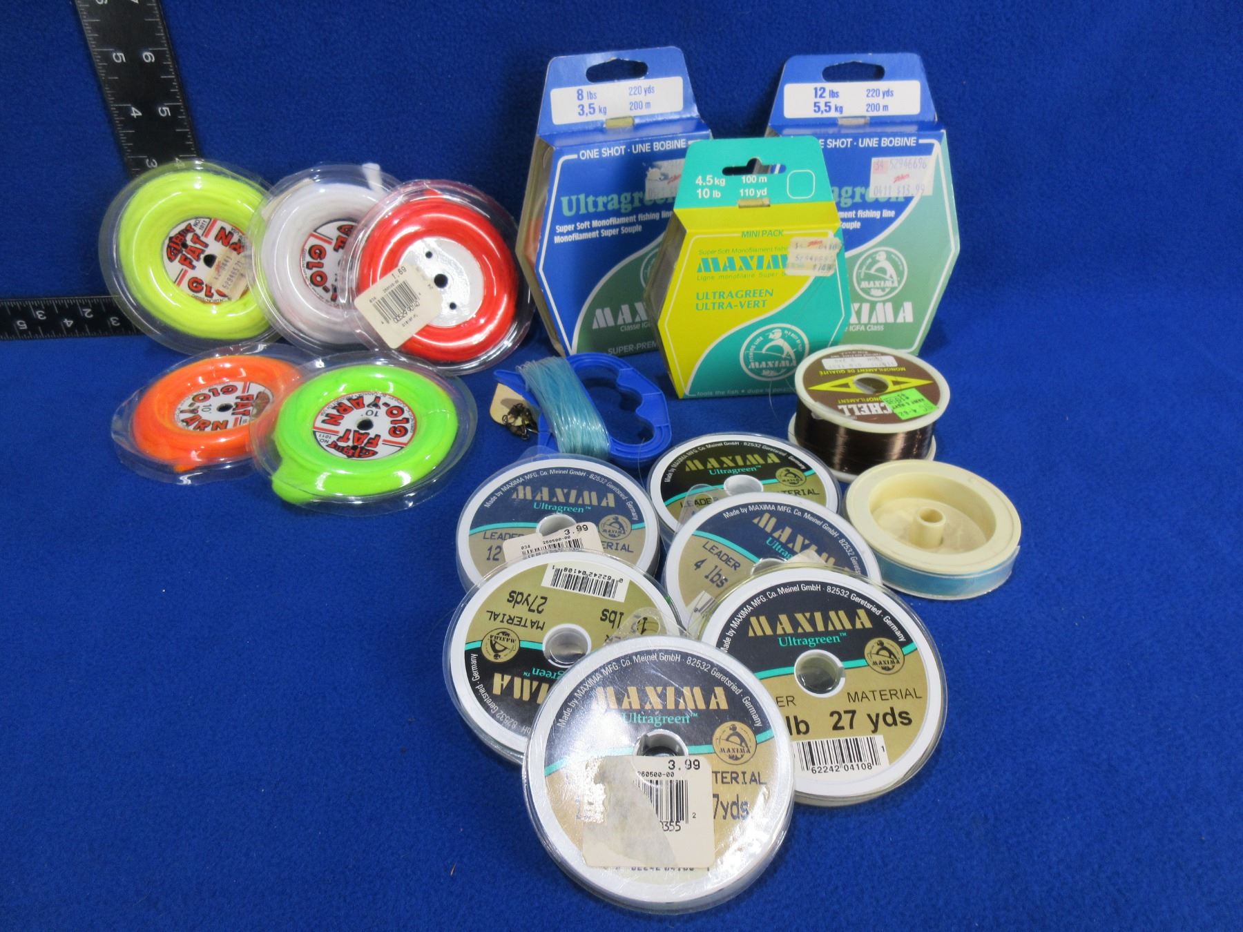 Lot of Assorted Fishing Line - 12 Rolls and 5 Glo-Yarn