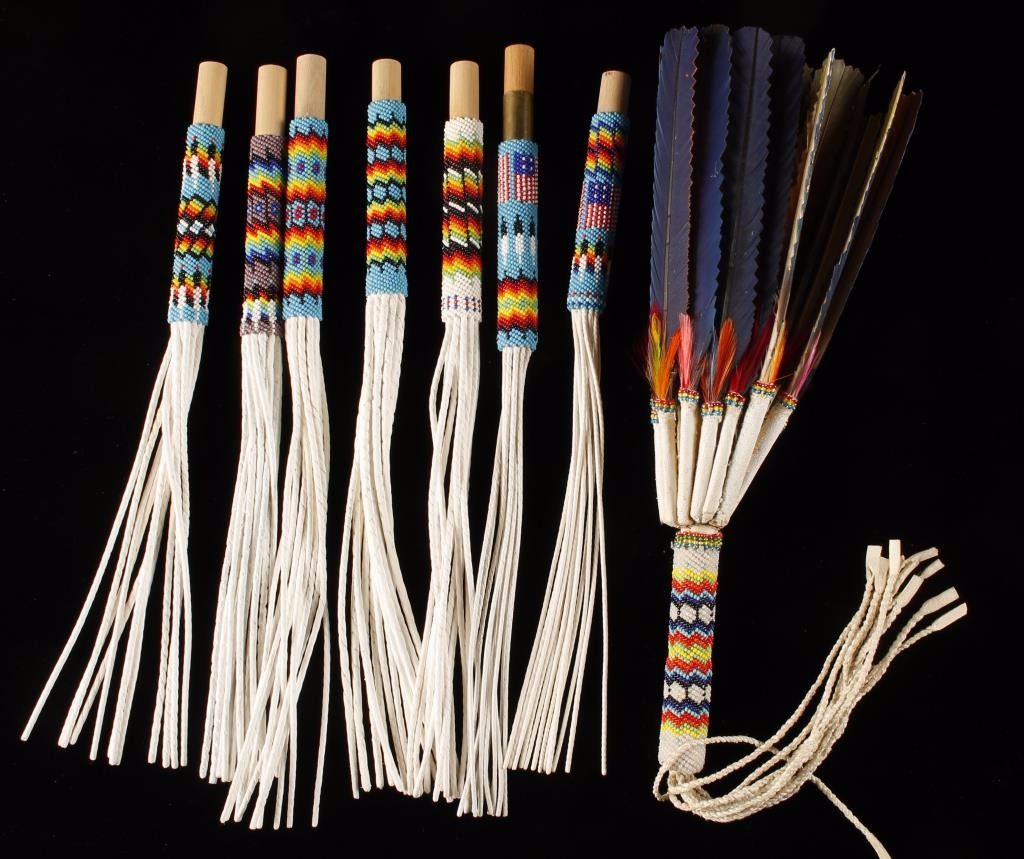 Lot of Beaded Fan Handles & Beaded Feather Fan