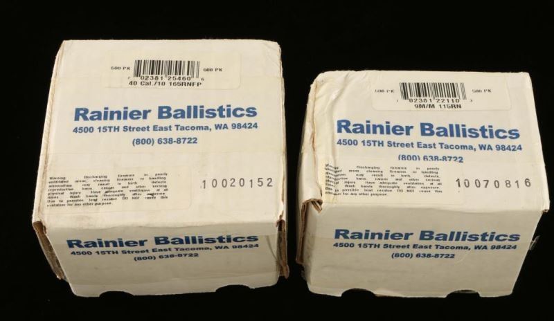 500 pack of 9mm and a 500 pack of 40 Cal. Both made by Rainier Ballistics.
