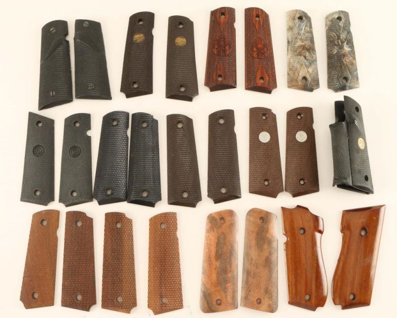 Most are wooden, also included is two pairs of Springfield 1911 wood grips