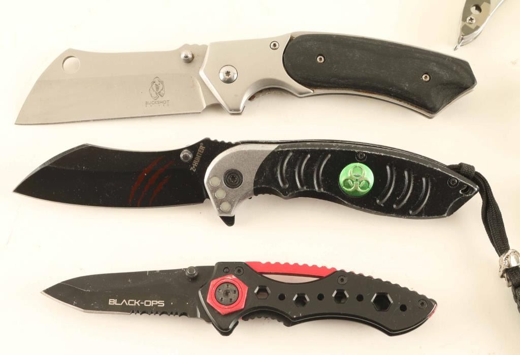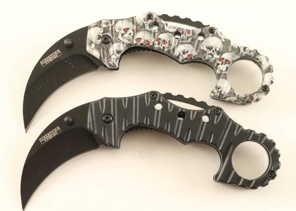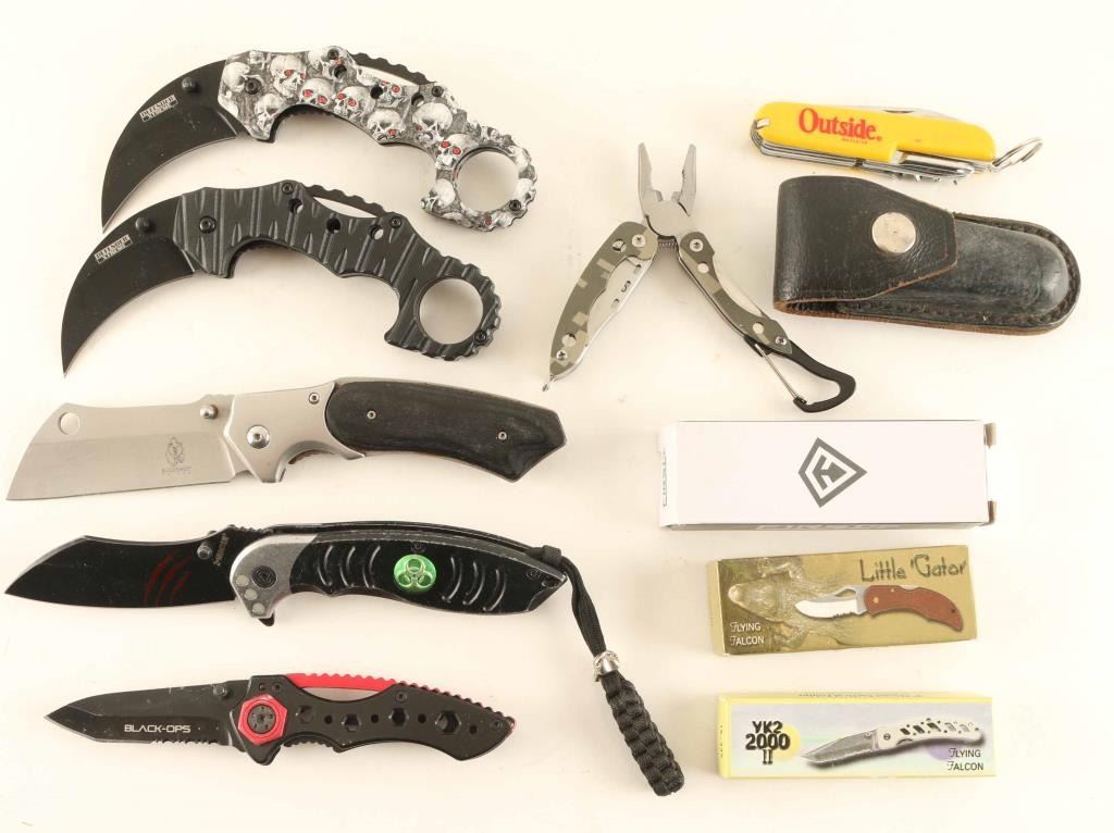 Ten total including two Defender Xtreme Karambit knives, a Flying Talon Little Gator and more. See Photo