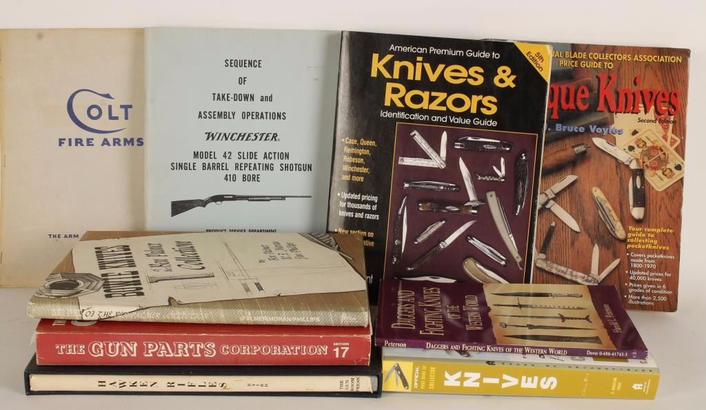 "Daggers and Fighting Knives of the Western World" by Harlold L. Peterson, "The IBCA Price Guide to Antique Knives" Second Edition by J Bruce Voyles, "Hawken Rifles" by John D Baird and more!
