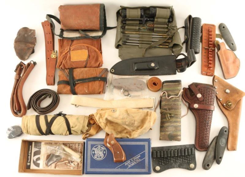 Also includes cartridge holders, butt pads, S&W box, knife sheaths, cleaning kit, and more.