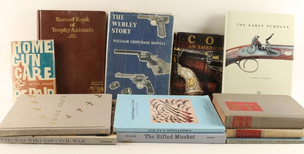 Including: "Record Book of Trophy Animals" by Safari Club International, "Wing Shots" by Albert Dixon Simmons, "Colt An American Legend" by R.L. Wilson, "The Early Purdeys" by L. Patrick Unsworth, "The Webley Story" by William Chipchase Dowell, "Home Gun Care & Repair" by P.O. Ackley, and more!