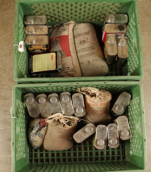 Including; Bag of Illinois Lead Shot, Bag of No. 2 Chill Shot Western, Partial bag of No. 7 1/2 All American Hard Lead Shot, (3) No. 7 1/2 in metal cans, (3) No. 8 in metal cans, (3) Mixed in metal cans, and (1) No. 4 in a metal can.