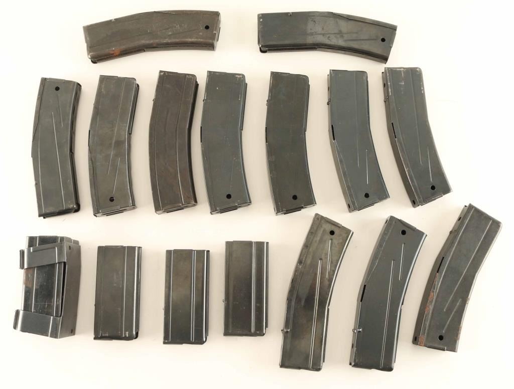 Includes (18) Magazines of various capacities, plus a steel M1 carbine oiler bottle.