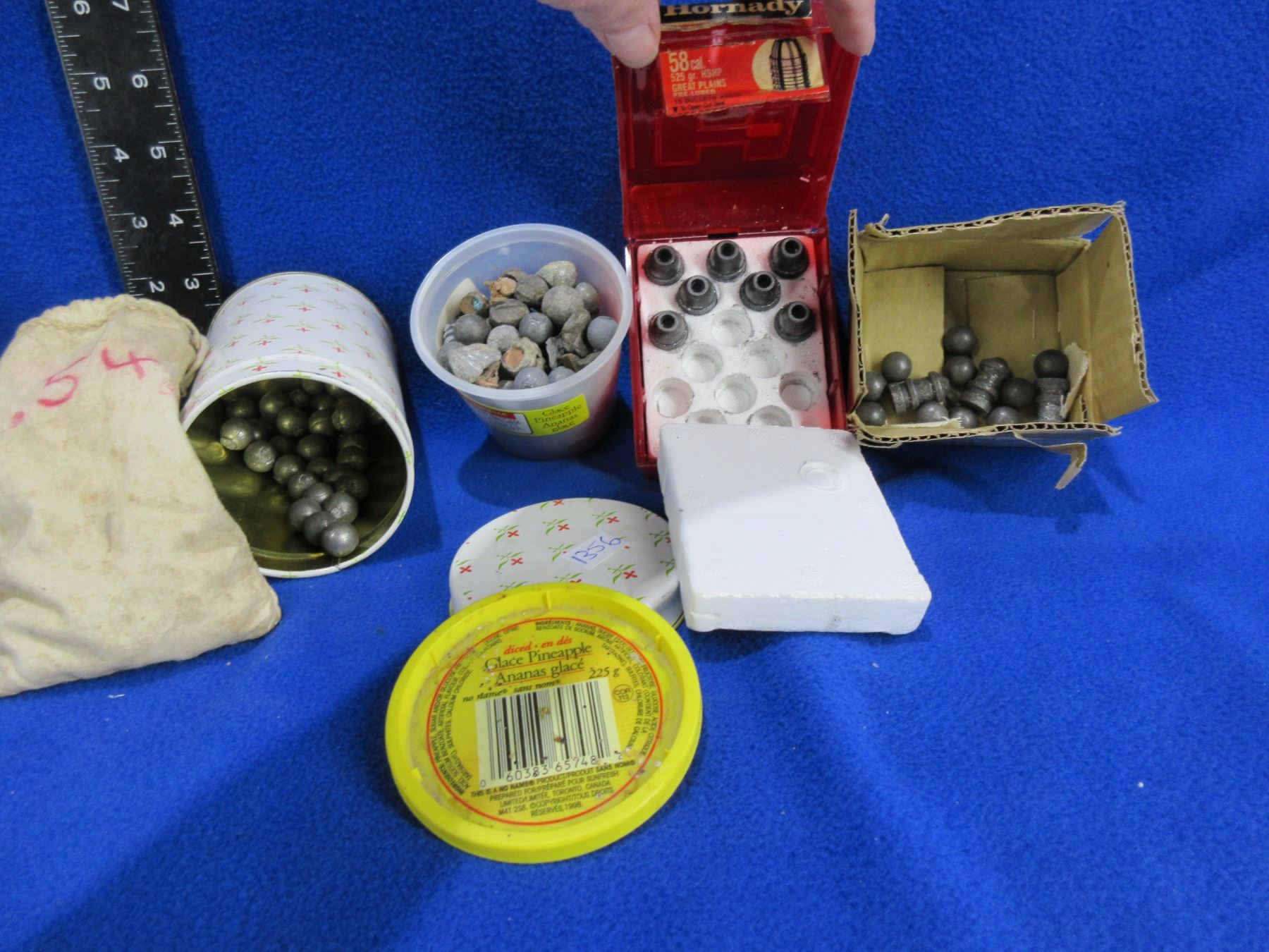Lot of Misc. - 58 Cal. Bullets (7) and Assorted Round Balls (approx. 50 and 54 cal.)