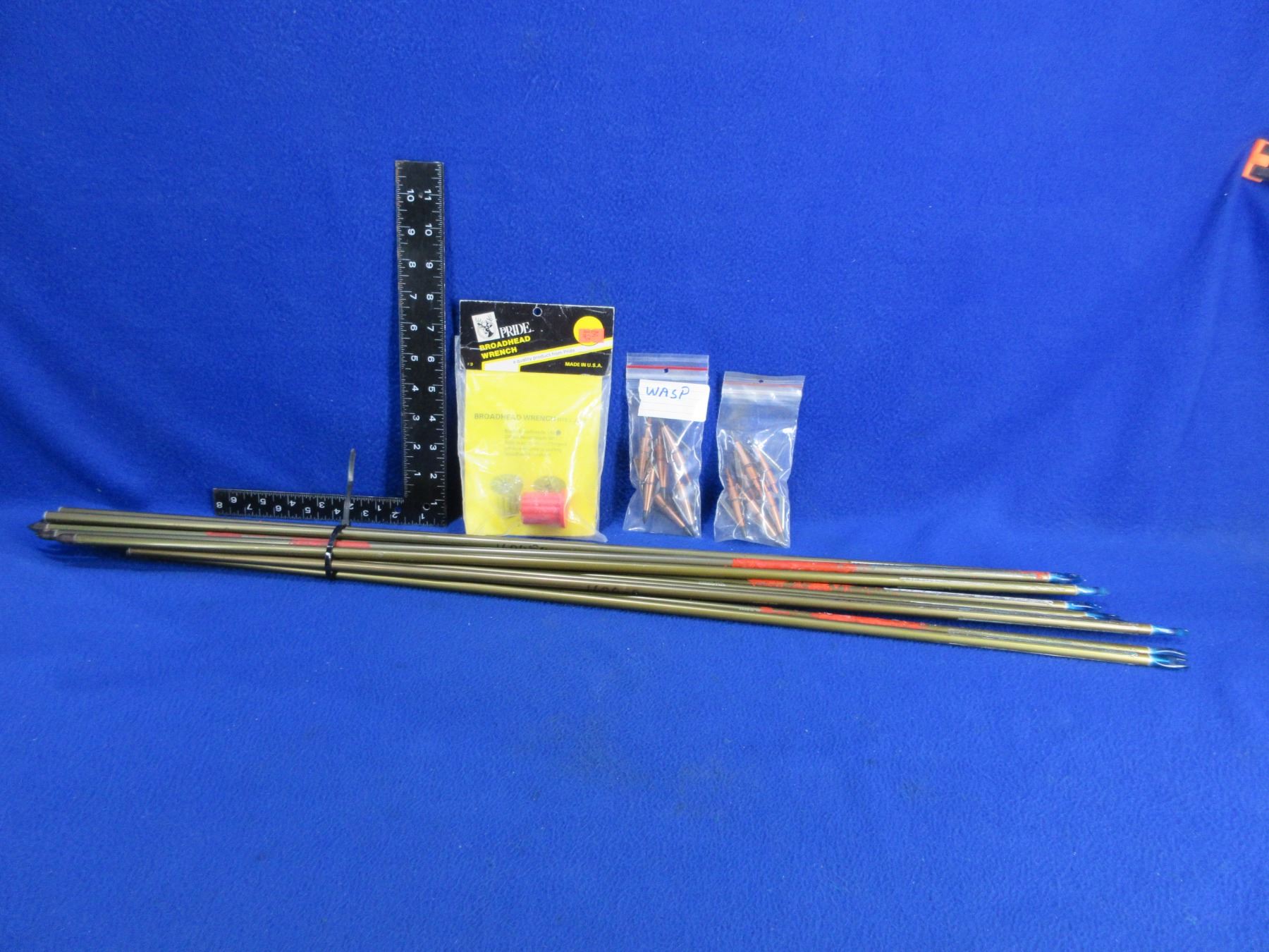 Lot of Misc. Archery - 12 Easton Gamegetter 2216 Arrows, 12 Wasp Broadheads, 6 Field Tips (On Arrows) and a Broadhead Wrench
