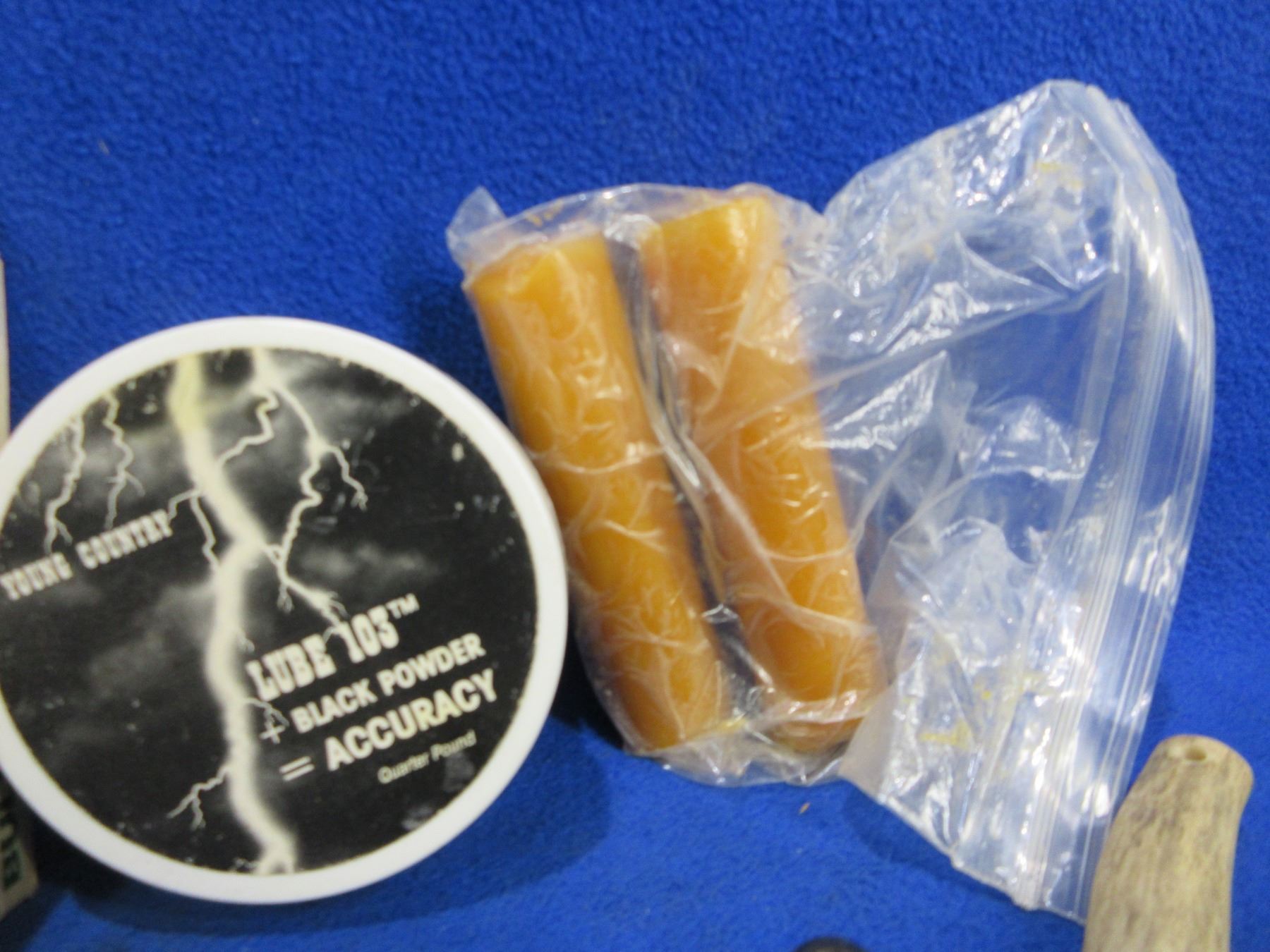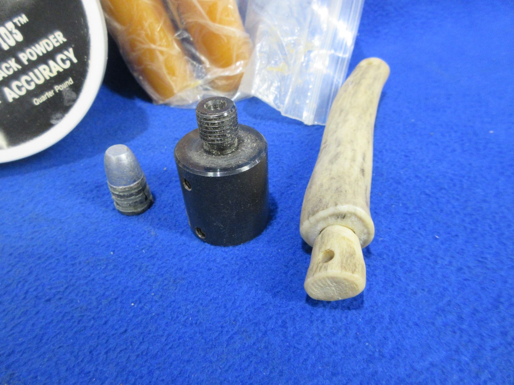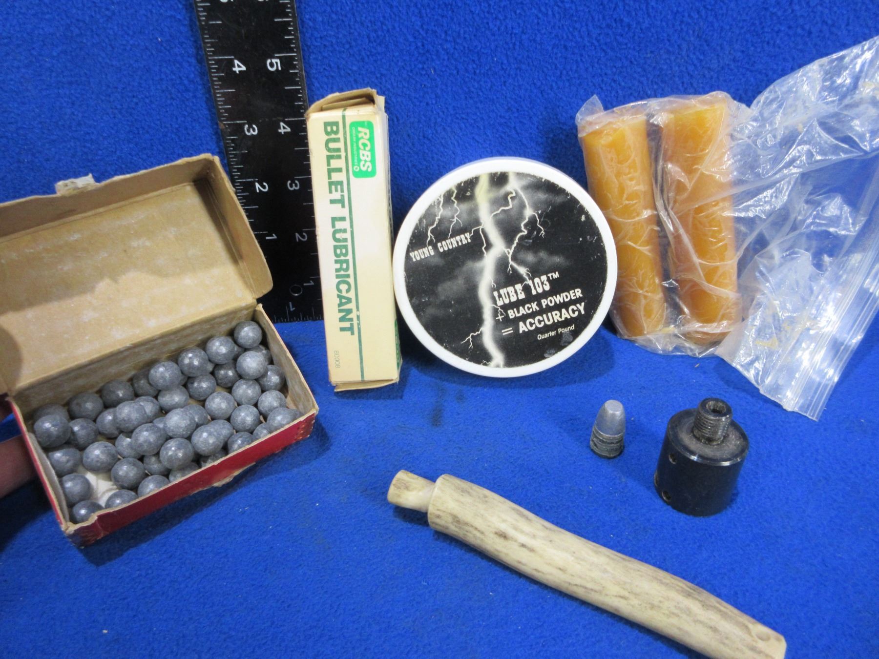 Lot of Misc. Muzzleloading Supplies - .445" Lead Balls (50), Lube, Powder Antler, Etc.