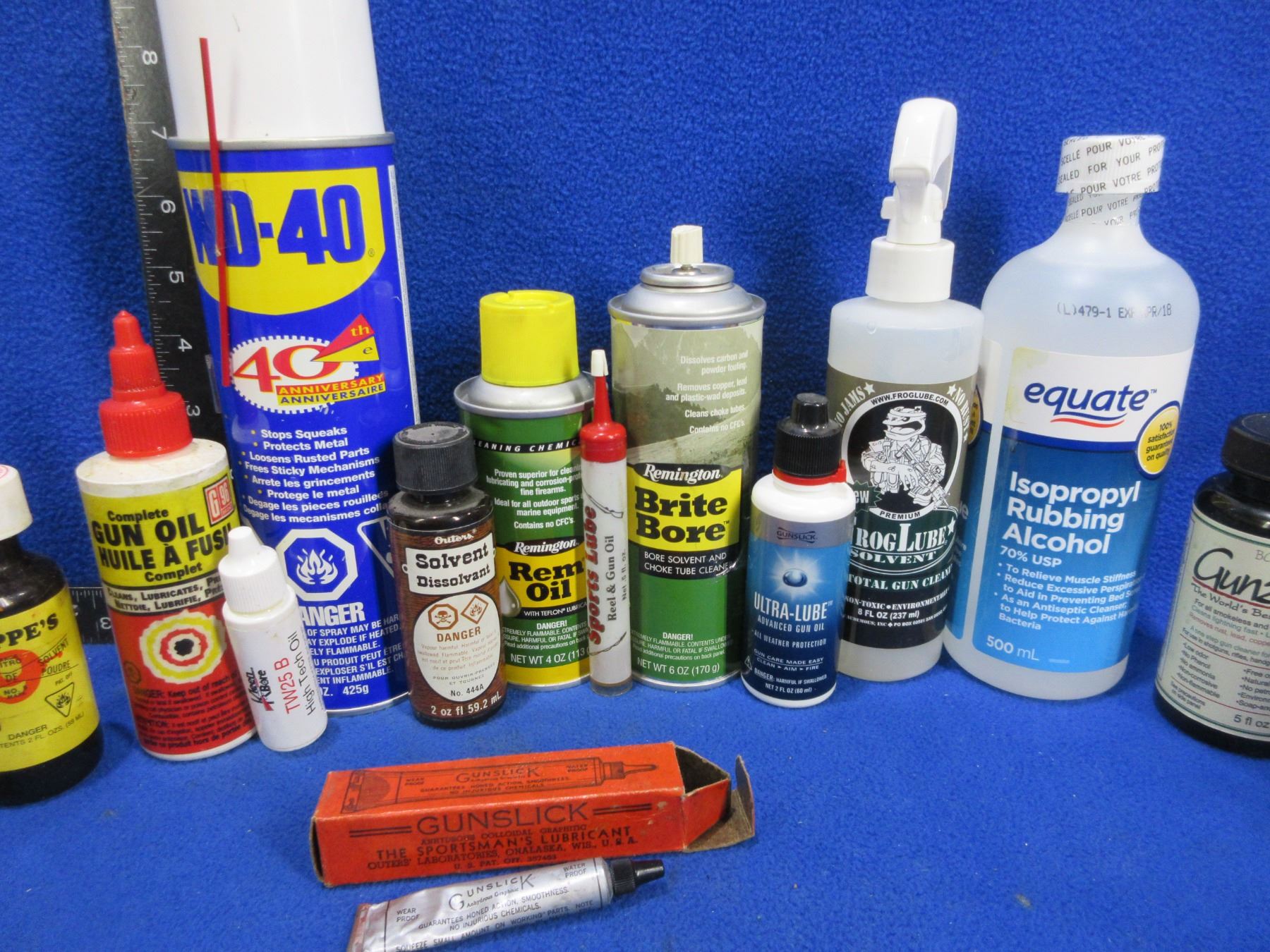 Lot of Misc. Oils & Solvents - PICK UP ONLY - WD40, 3 in 1 Oil, Gunslick, Hoppes 9, Etc.