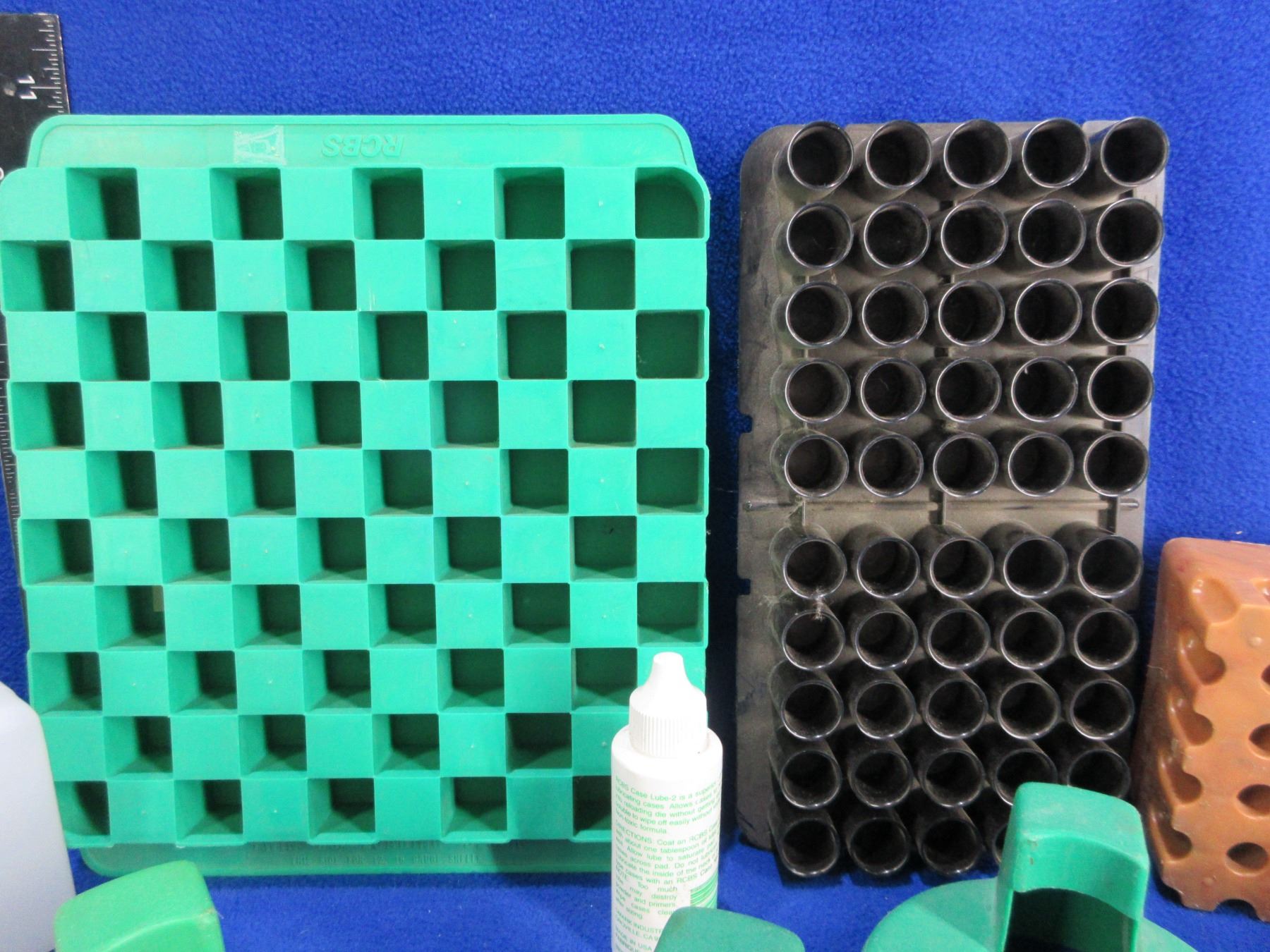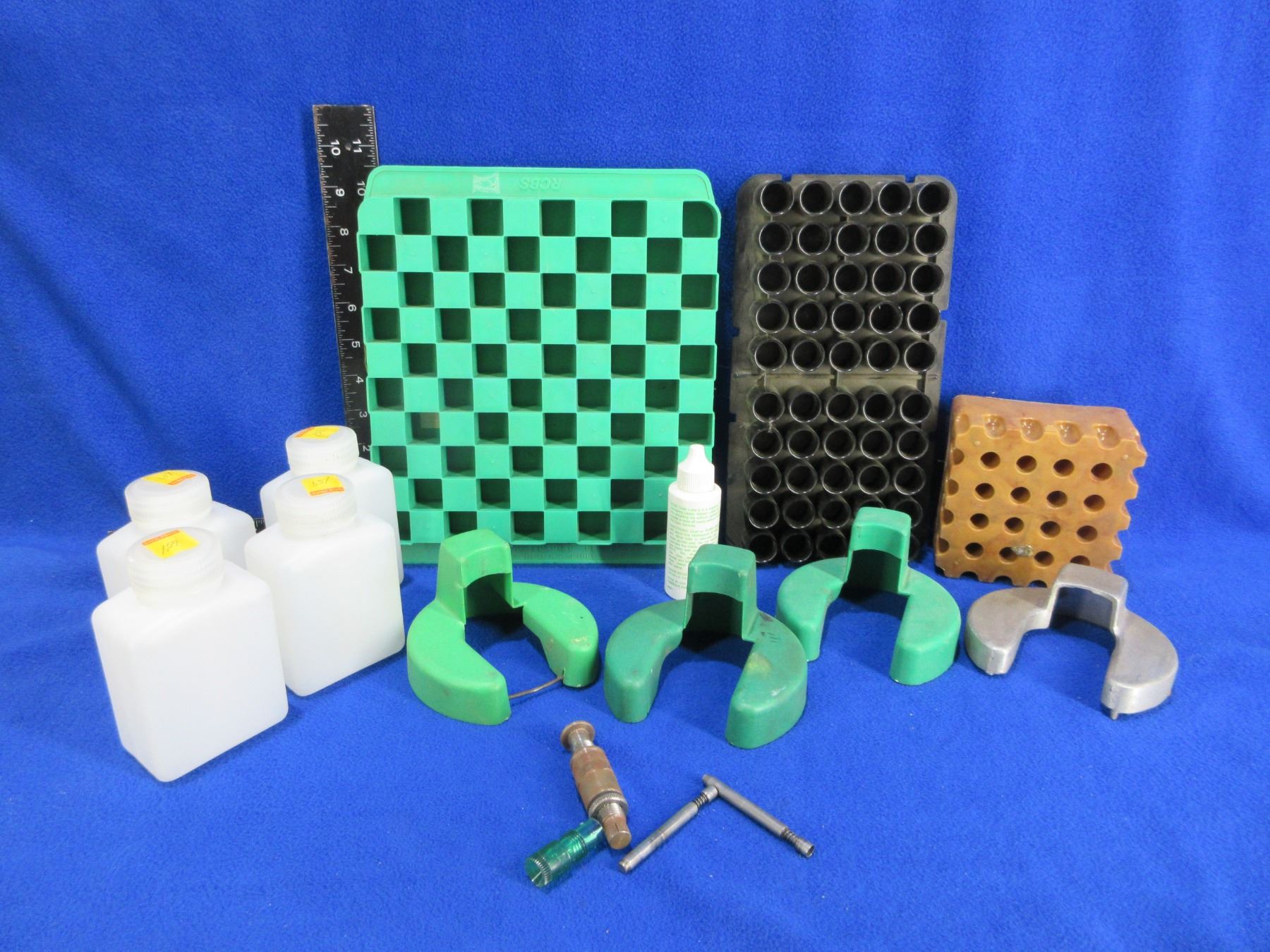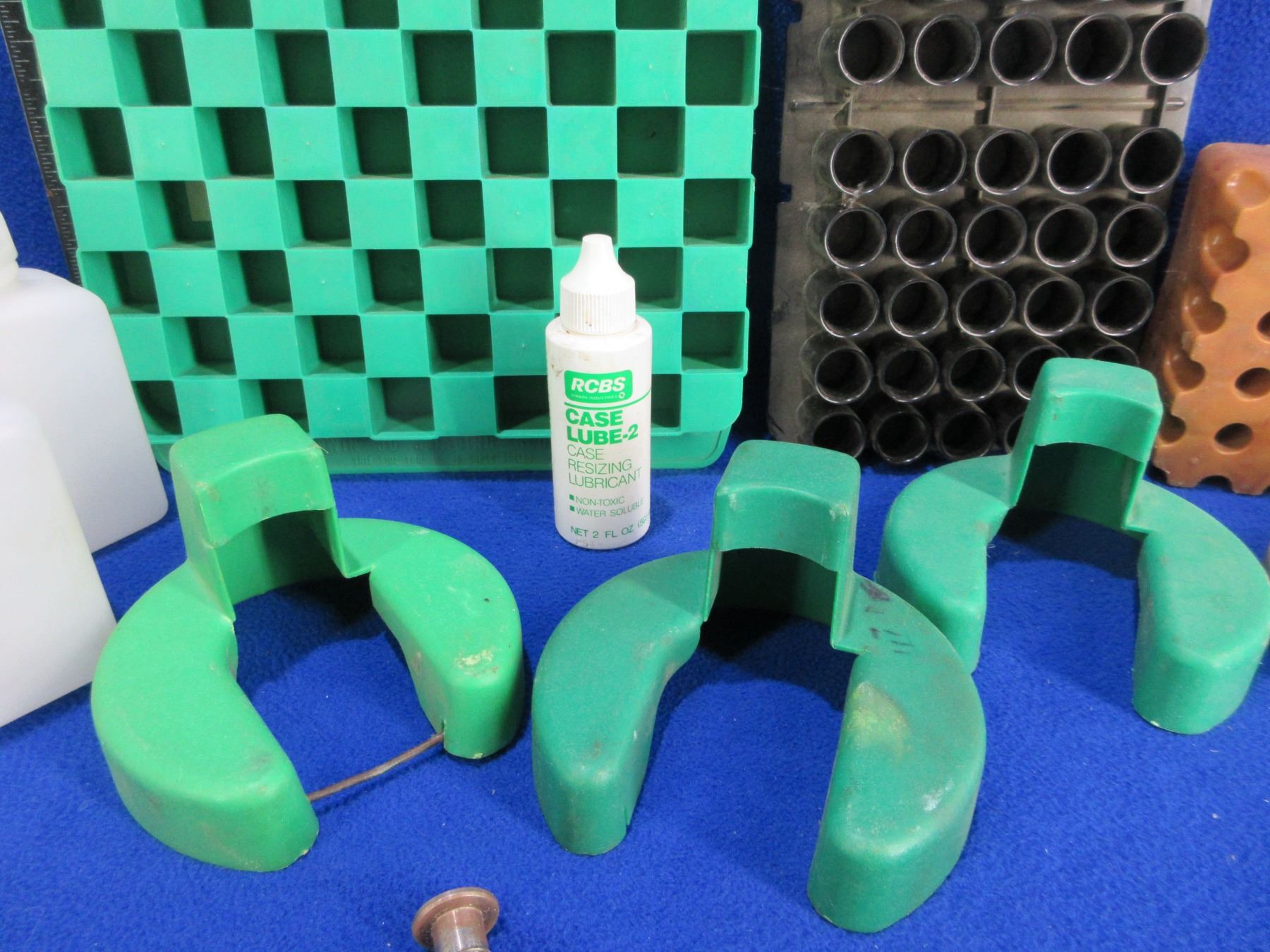 Lot of Misc. Reloading Equipment - 4 RCBS Primer Catchers, 3 Reloading Blocks, RCBS Case Lube-2, 4 Plastic Bottles, Parts