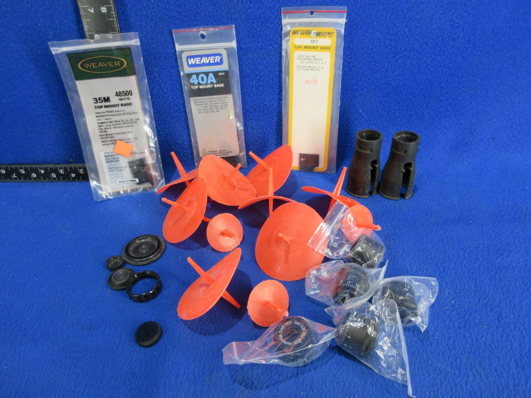 Lot of Misc. Scope Bases, Turret Knobs Etc. - Plastic Target Markers, Weaver 35M Top Mount Base, Weaver 40A Top Mount Base, Turret Knobs, Etc.
