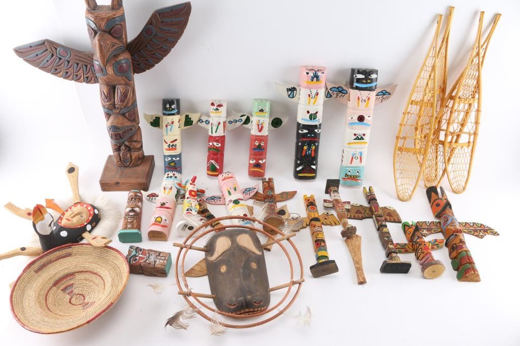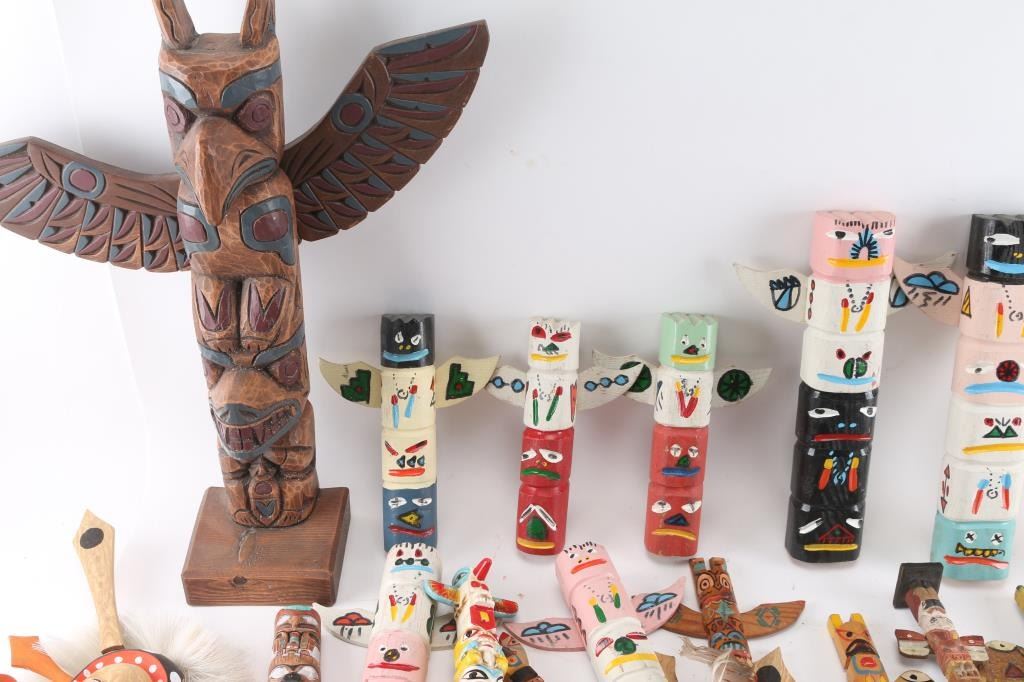 (14) carved wood totem poles measuring 5 1/2" to 12".