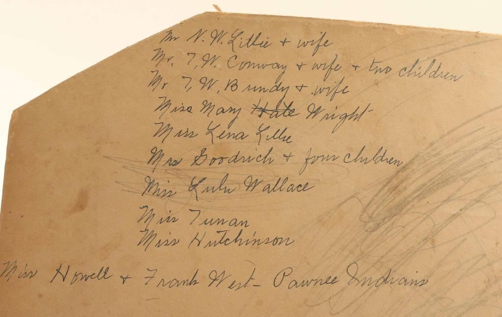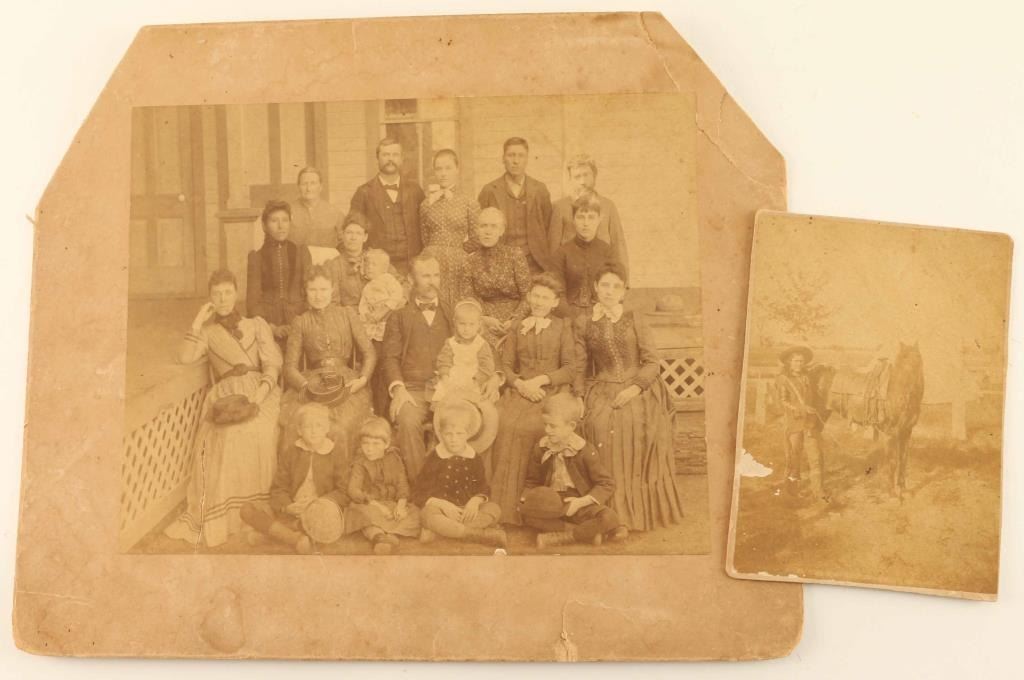 (1) GW Lillie in the early days with buckskins and horse label and inscription on reverse. (1) Pawnee Bills family photo all named on back