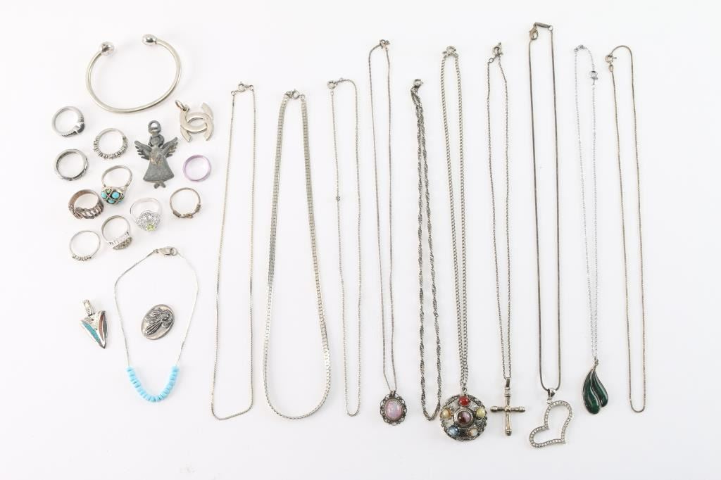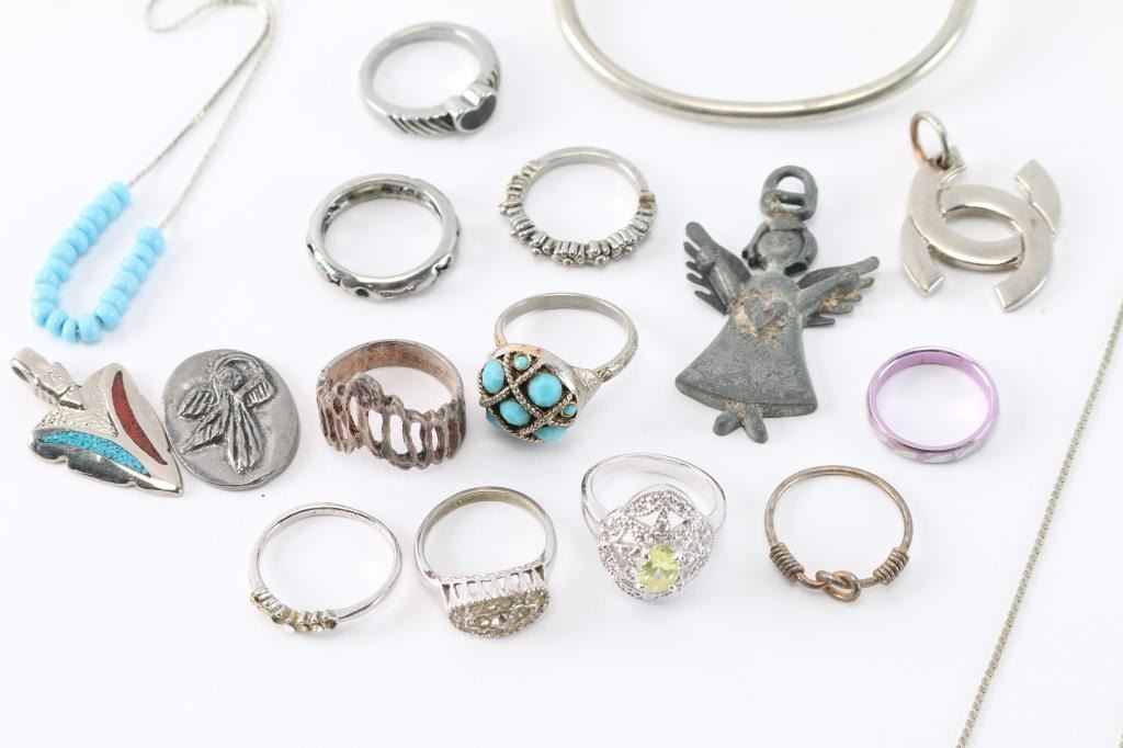 Includes various necklaces, bracelets, rings and pendants.