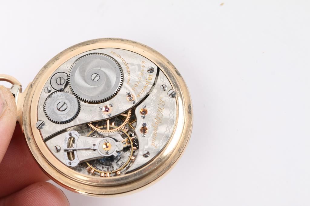 The following six pocket watches are not running. Parts, repair. 1) Elgin 'B.W. Raymond' grade 455 model 15, 16 size, 19 jewel. 10K gold filled case. Broken balance staff. 2) Hampden grade 35, 18 size, 15 jewel. Nickel/silver case. Good balance. 3) Elgin grade 495 model 4, 12 size, 17 jewel. 10K gold filled case. Broken balance. 4) Elgin grade 82 model 3, 18 size, 15 jewel. Base metal case. Good balance. 5) Waltham grade 820 model 1883, 18 size, 15 jewel. Gold filled case. Bad balance, no crown. 6) Elgin grade 207 model 4, 18 size, 7 jewel. Silver case. Good balance.