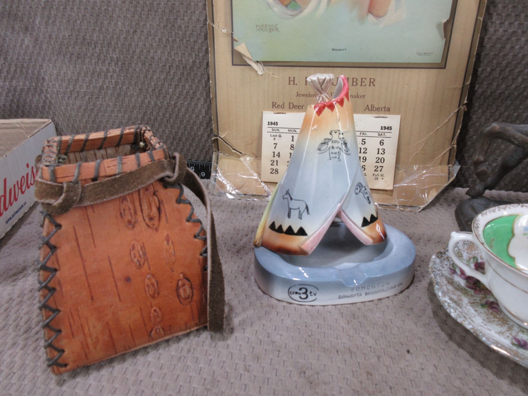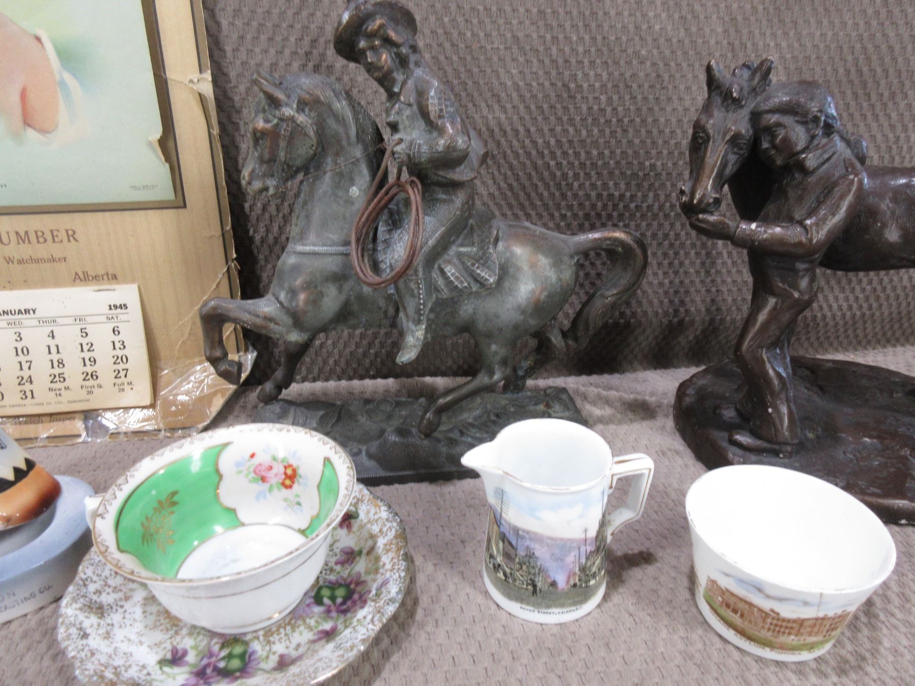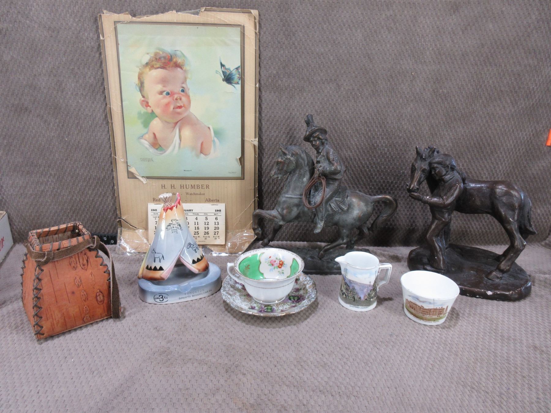 Lot of Vintage Misc. Tea Cups, Calendar, Horse Statues