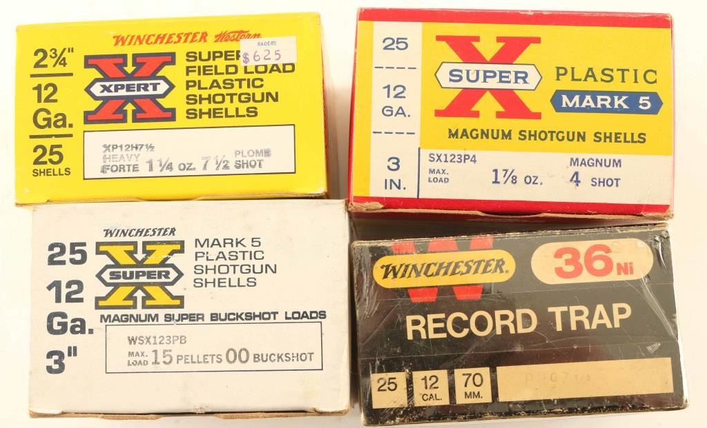 Includes 25rds of Winchester Super X Magnum 5 12GA, 25rds of Winchester Super X Magnum Super Buckshot 12GA, and 25rds of Winchester X Xpert Super Field Load 12GA. Also includes 25rds of Winchester Record Trap 12GA.