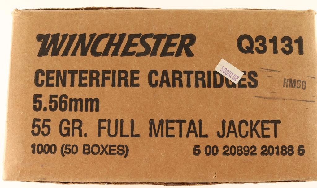 Box of 5.56 Centerfire FMJ 55Gr. 50 boxes of 20 Rds each-1000 total.