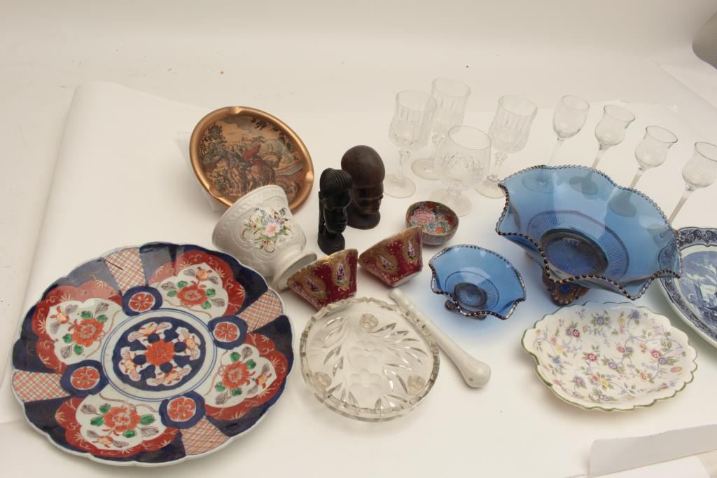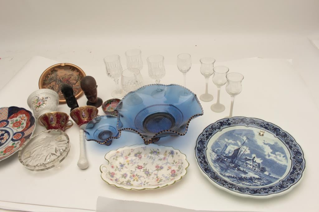 Lot of antique misc. glassware and wood carvings. Est.: $150-$300