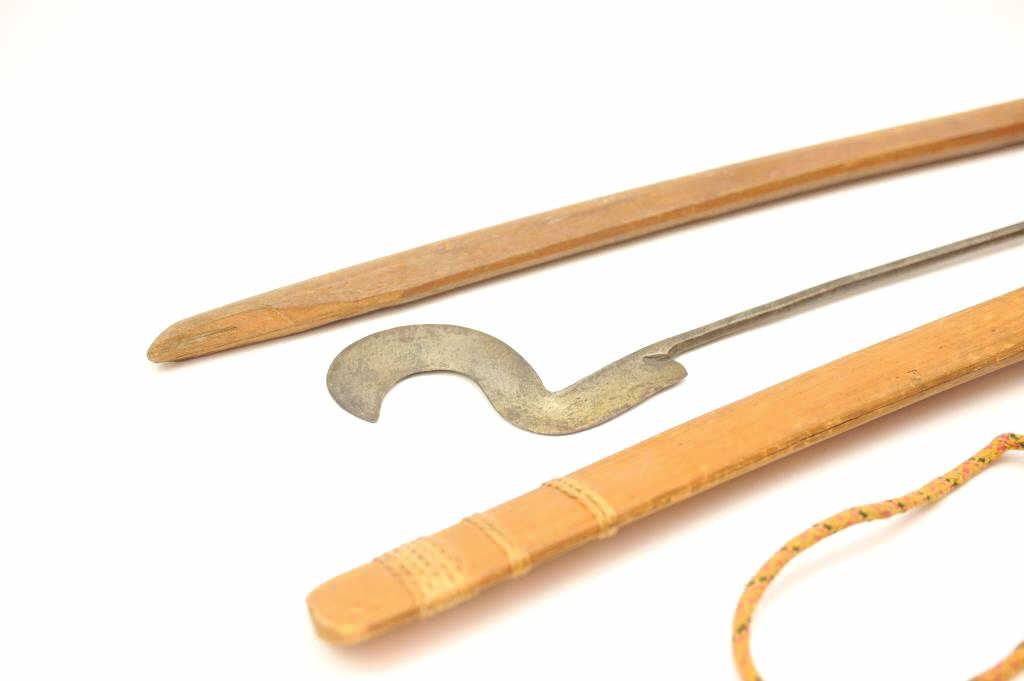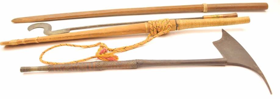 Lot of ethnic weapons including; 2 old pre-1900 African weapons, 2 mid-late 20th century Asian. All items are in varied conditions. Est.: $100-$200.