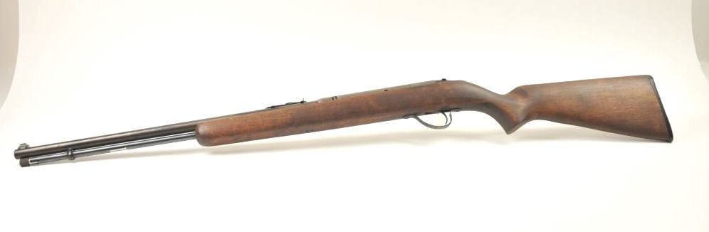 Lot of semi automatic rifles, including a Savage Model 6A, #NSNV, .22 LR, 24” barrel, tubular magazine, smooth wood stock with hard rubber butt plate. Rifle is in good condition overall, finish has turned to brown with moderate pitting, bore is good, action is good. Stock is good overall with mars, dings and dents from use, and some staining. The second is a Springfield Model 187S, #B174256, .22 LR, 20” barrel, tubularmagazine, smooth wood stock with hard rubber butt plate. Rifle is in good condition overall, finish is very good overall with some freckling, bore is good, action is good. Stock is good overall with mars, dings anddents from use, and some loss of finish. The third is a Springfield Model 187N, #NSNV, .22 LR, 19 3/4” barrel, tubular magazine, smooth wood stock with hard rubber butt plate. Rifle is in good condition overall,finish has turned to brown with little finish remaining, bore is good, action is good. Stock is good overall with mars, dings and dents from use, and some staining. (C&R/PPT) Est. $150-300
