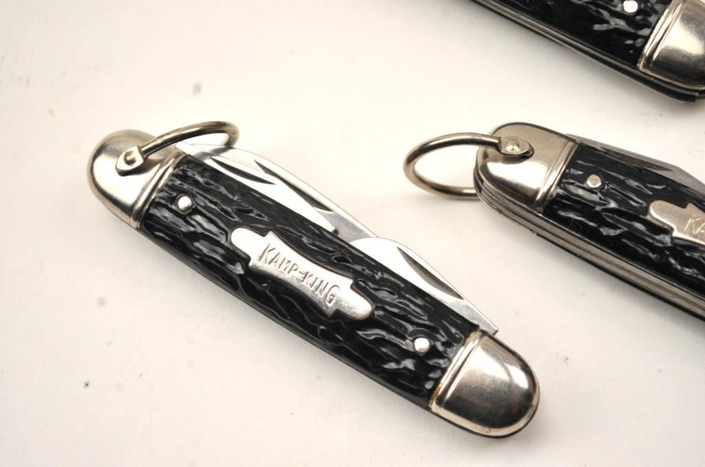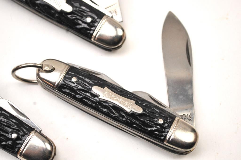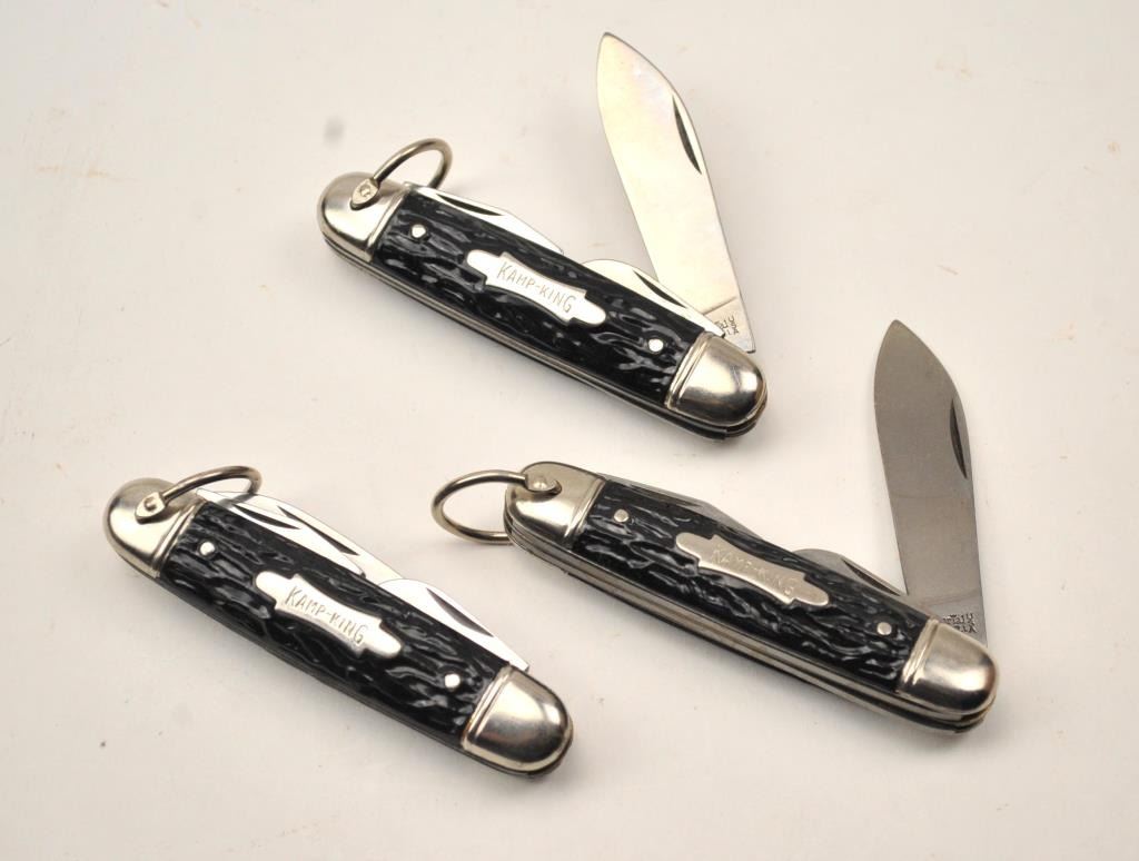 Lot of three Camp King pocket knives with four blades by Imperial, Providence R.I. (USA). The knives are excellent, “Old Stock” from the 1950’s-1960’s. Est.: $100-$200.