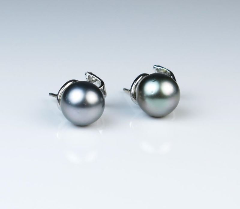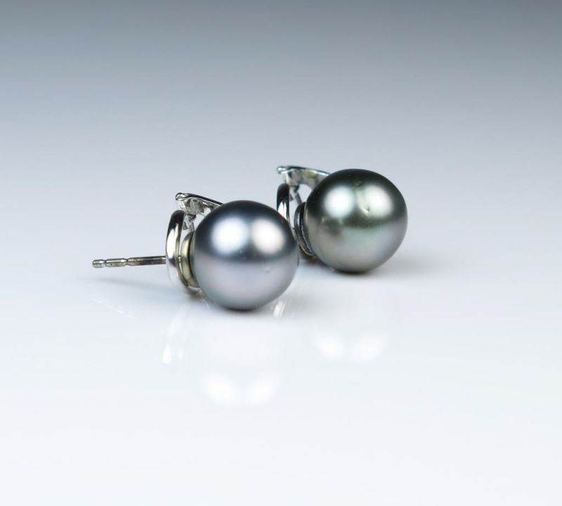 Measure 9.50mm in diameter with rich silver grey luster and quality with quality style backings made in 14K white gold.