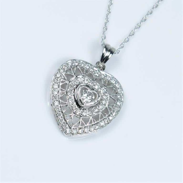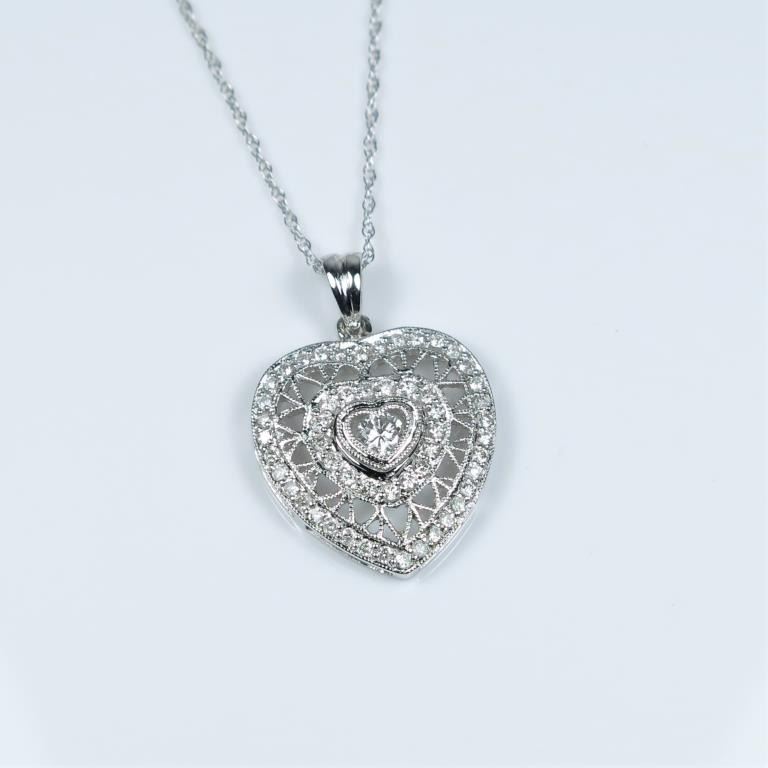 featuring 57 round cut Diamonds weighing approx. 0.50 carats with F-G colors and VS/SI clarity set in highly detailed antique style setting of 14 karat white gold. Retail $1,500-$2,000