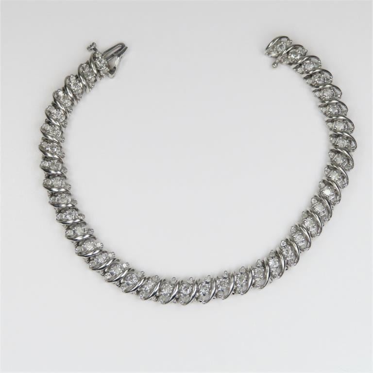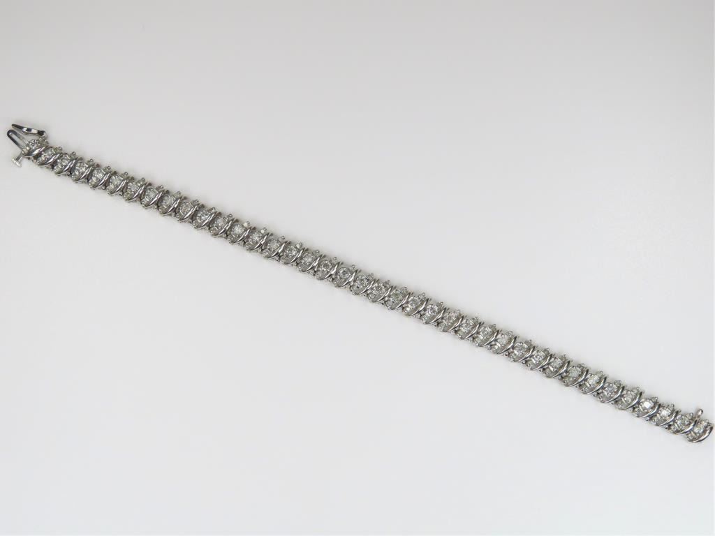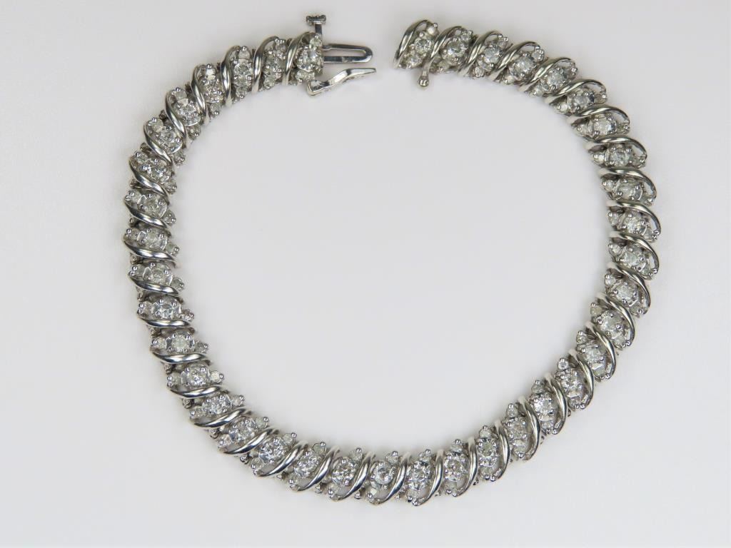 featuring 114 round cut Diamonds weighing approx. 3.50 carats with G-H colors set in 10 karat white gold bracelet. Retail $5,000-$6,000