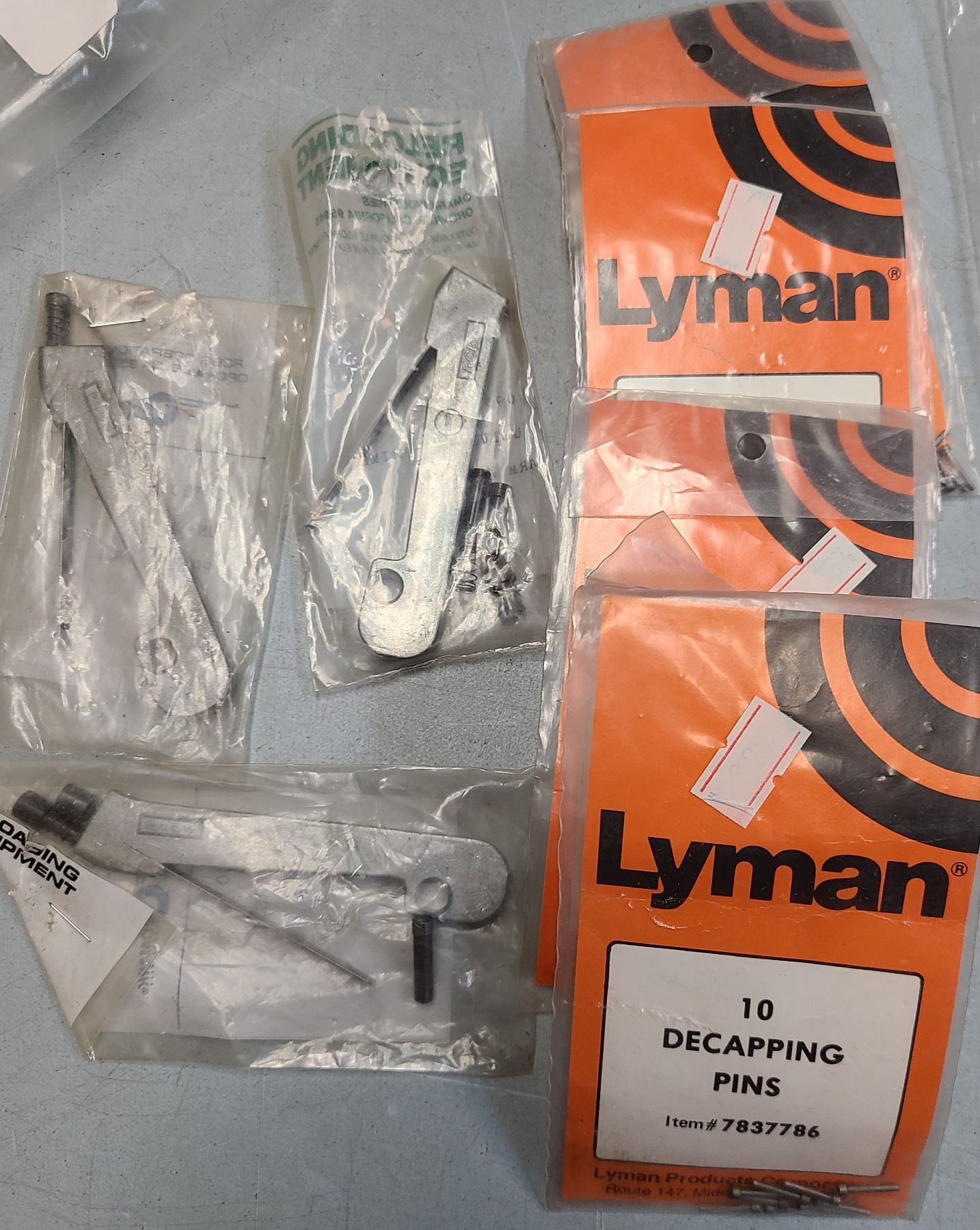 Lyman Decapping Pins x 40 + RCBS Universal Primer Arm Assembly x 3 - NEW