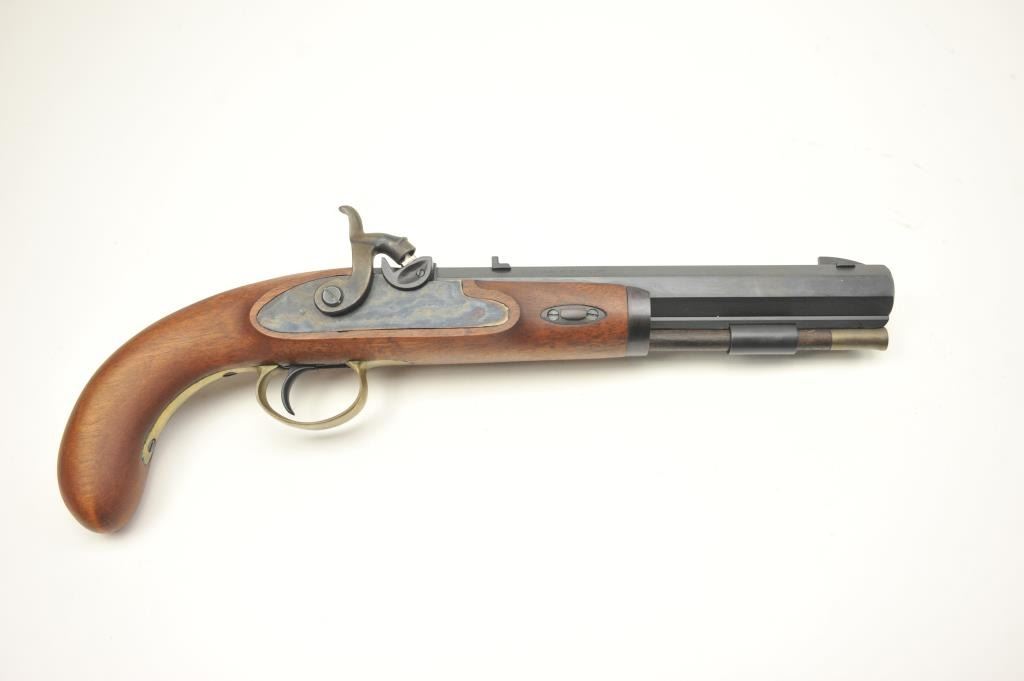 Lyman Hawken Style “Plains Pistol” in .54 caliber Percussion, S/N 254414. Excellent condition. No appreciable use or apparent firing. Measures 15” overall with a 9” heavy octagon barrel. (Percussion) Est.: $150-$300