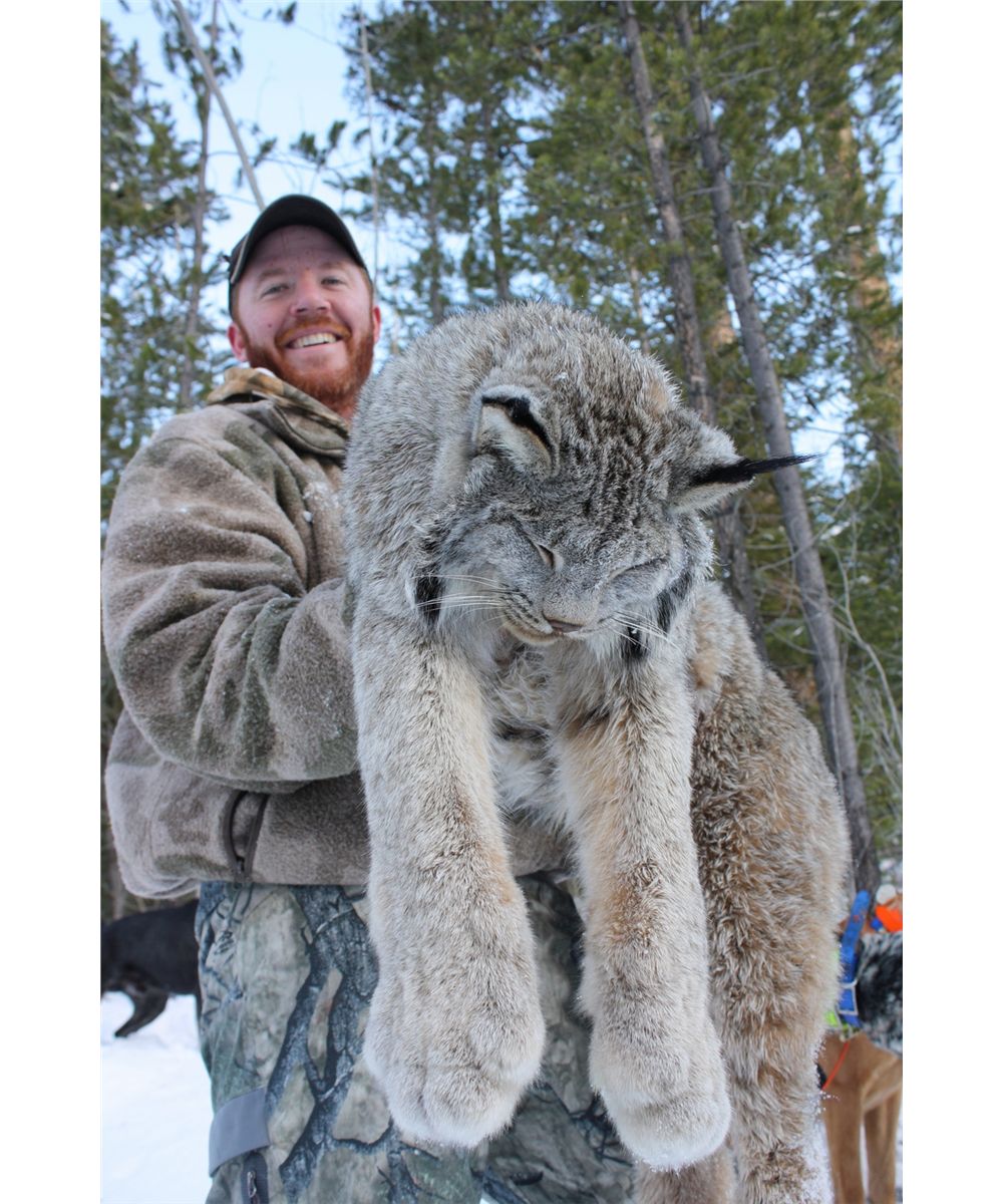 This 7-day 1:1 lynx hunt with guide outfitter Colin Niemeyer includes covering as much country using truck and snowmobile as possible looking for sign. When a fresh track is found and your guide feels that it is the trophy you are looking for, it all up to the dogs. The thrill of hunting lynx the most beautiful of the American cats with dogs is something that every hunter should experience. You can upgrade this trip to include a cougar for $6,000 USD. A non-hunter may join you for the experience for $150 USD per day.