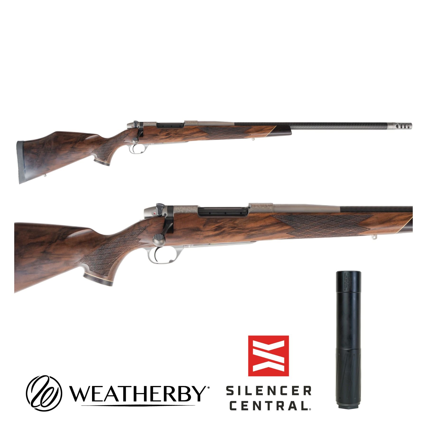 Included with this 80th Anniversary Weatherby is a Banish Gold - V2 Suppressor brought to you by Silencer Central.
