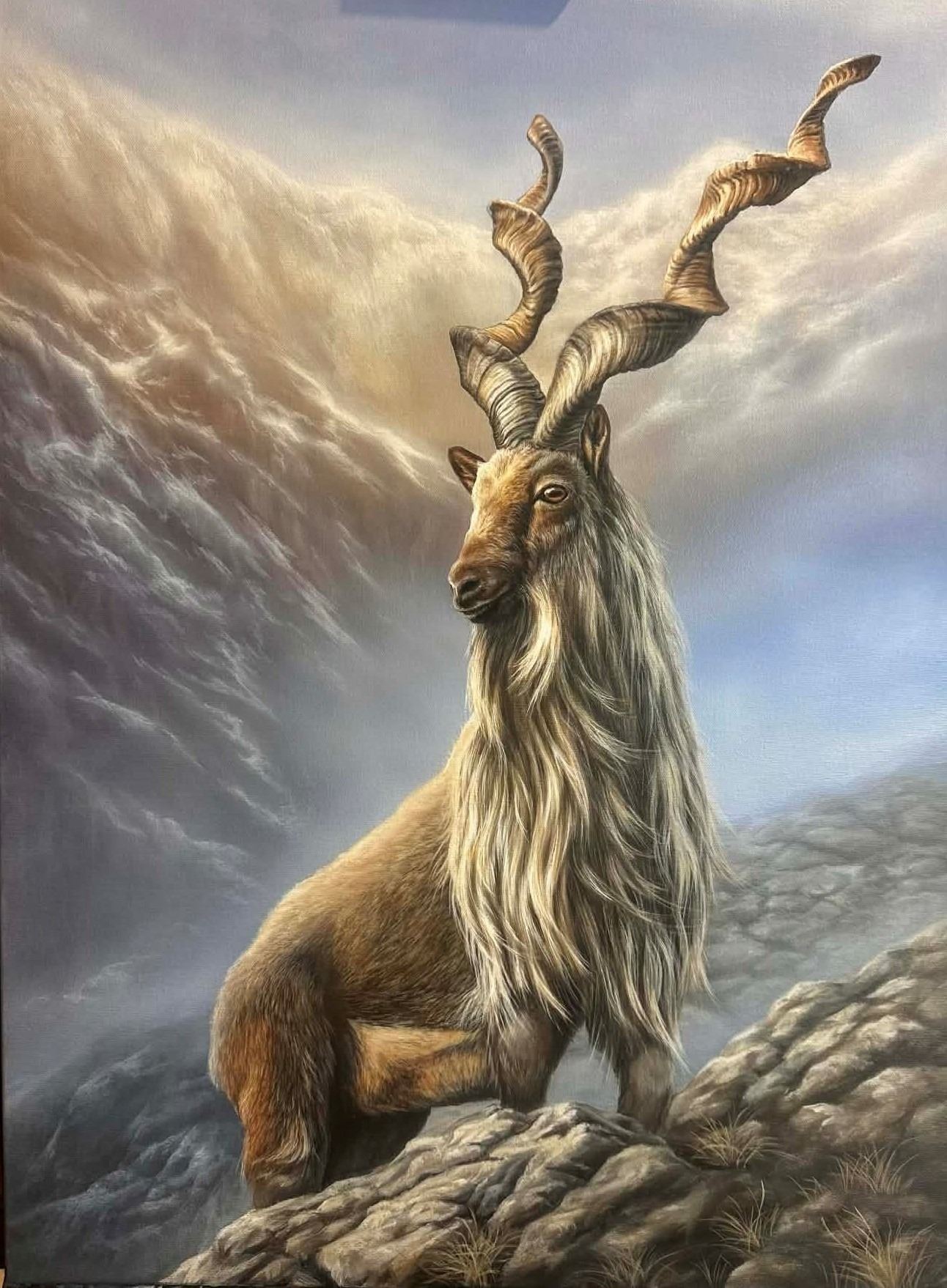 “Markhor Majesty” - Original acrylic painting on canvas by New Zealand artist Gloriana Pilgrim, measures 22” x 30”.
